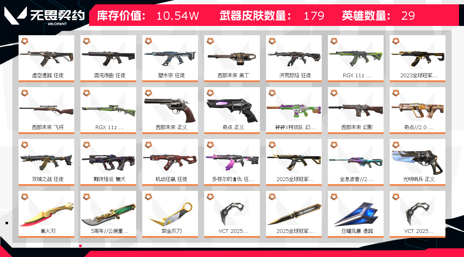 首页 > 租号大厅 > 无畏契约-wegame > wegame/wegame > 10.5万库存♥22-23-25冠军套♥离火刃♥三棱军刺♥塑水宗♥猫猫ak♥颗秒套♥奇点2.0