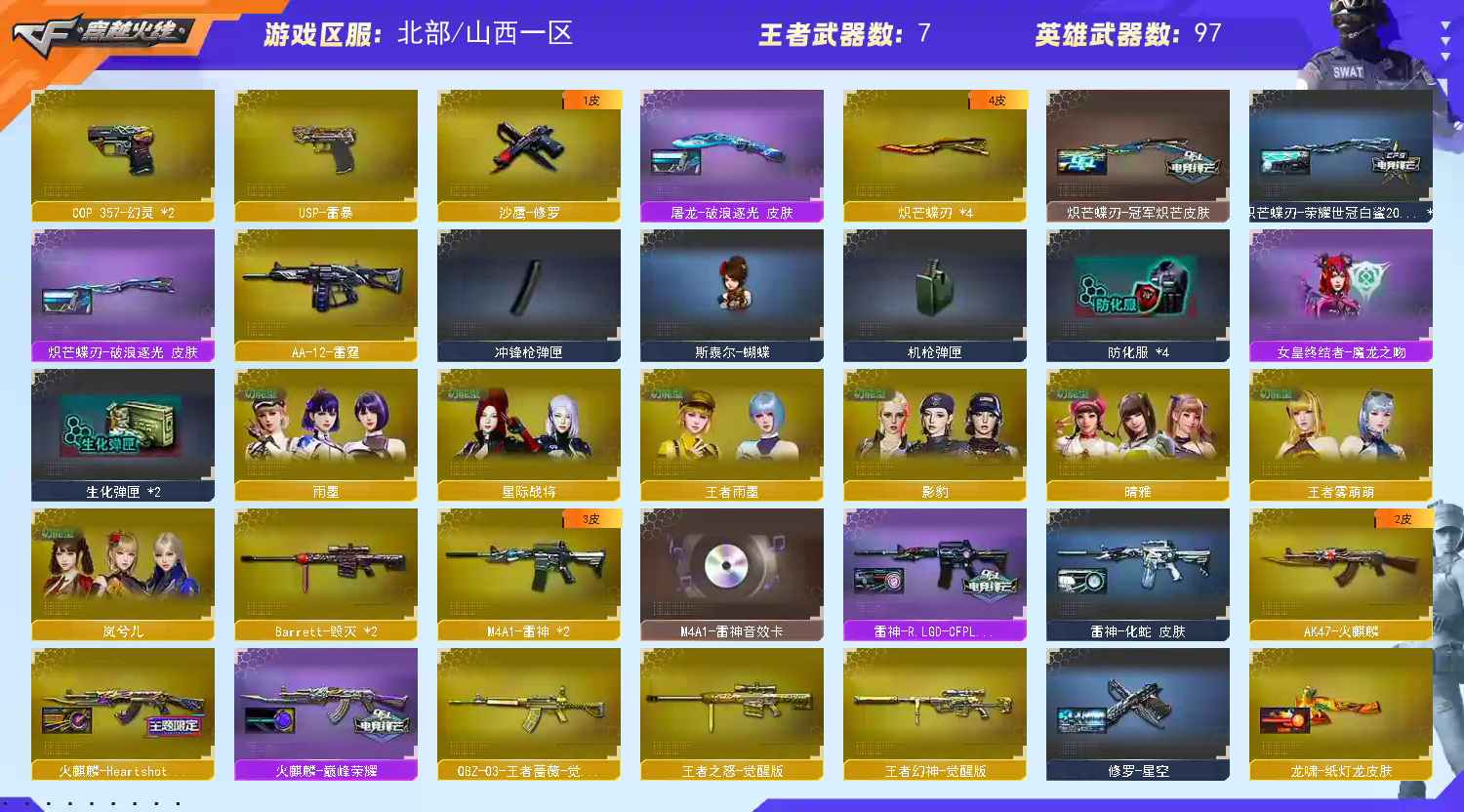 • 游戏区服:穿越火线 / 网通区 / 山西一区