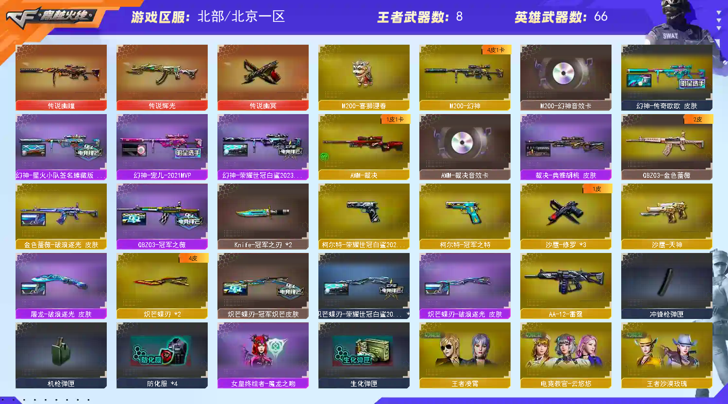 ★收藏好评! 由于异地登录保护机制,部分客户在使用客户端自动上号时会出现密码错误,注意本号密码不会错误,请多尝试5-6次!本账号已经过虚拟财产,请各位科技大神高抬贵手。请素质租号,文明游戏,谢谢大家配合!!;柯尔特-荣耀世冠白鲨2023,传说幽冥,柯尔特-冠军之特,炽芒蝶刃,Knife-冠军之刃,电竞教官-云悠悠,王者沙漠玫瑰,