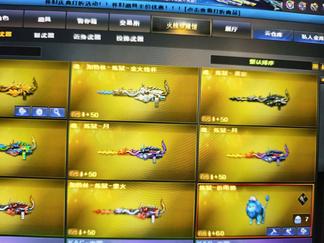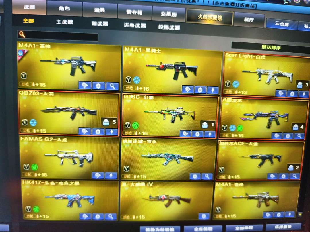 鹰,宋雨琦,枪天罚,天戎, Ace加利尔天袭,g36c幻影,白虎,八面玲珑。AK雷暴套