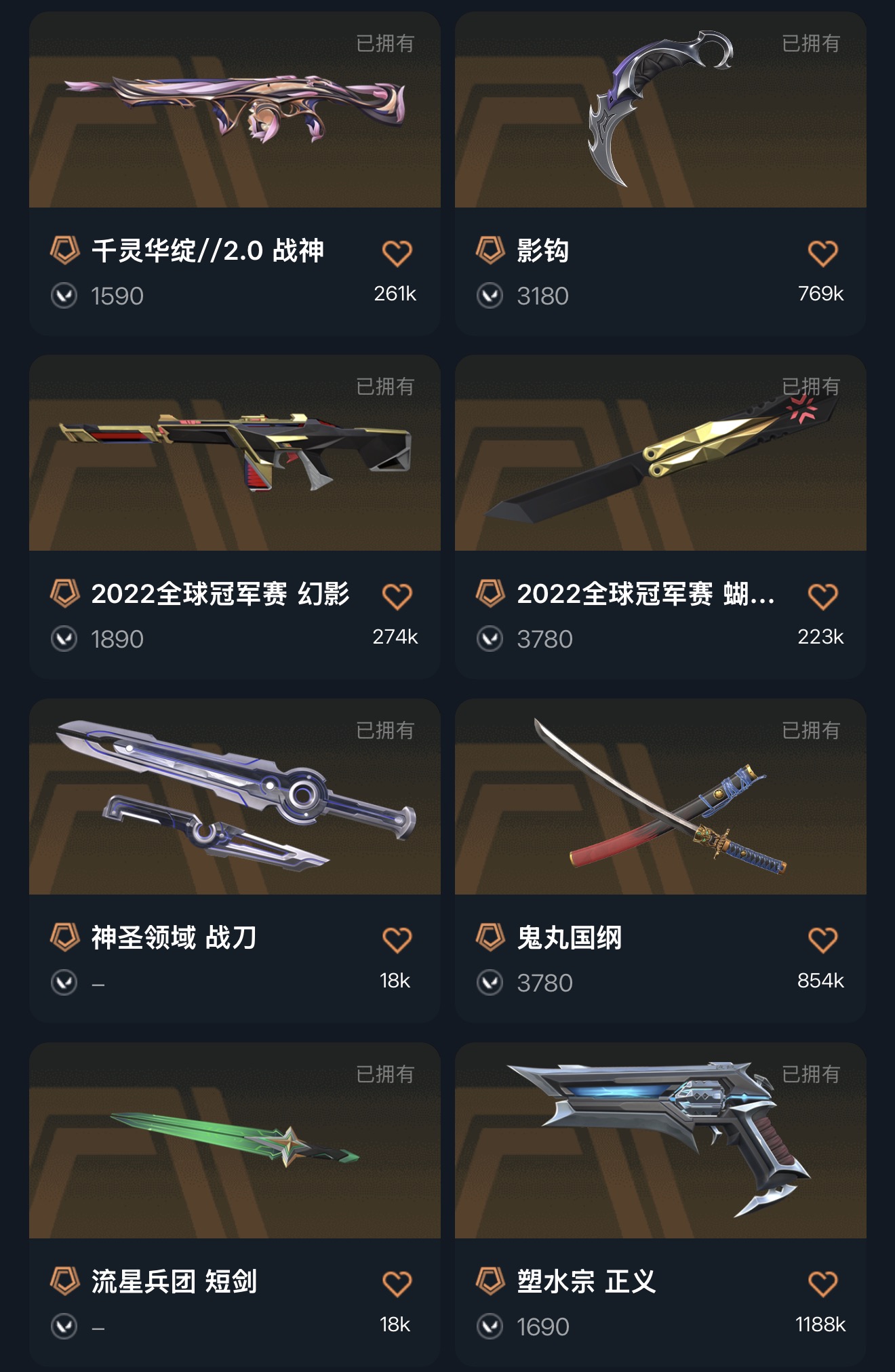 冻结秒解✨2022冠军套✨ORA颗秒狂徒✨影钩✨洪荒怒焰狂徒✨鬼丸国纲✨侦查幻影✨塑水宗正义