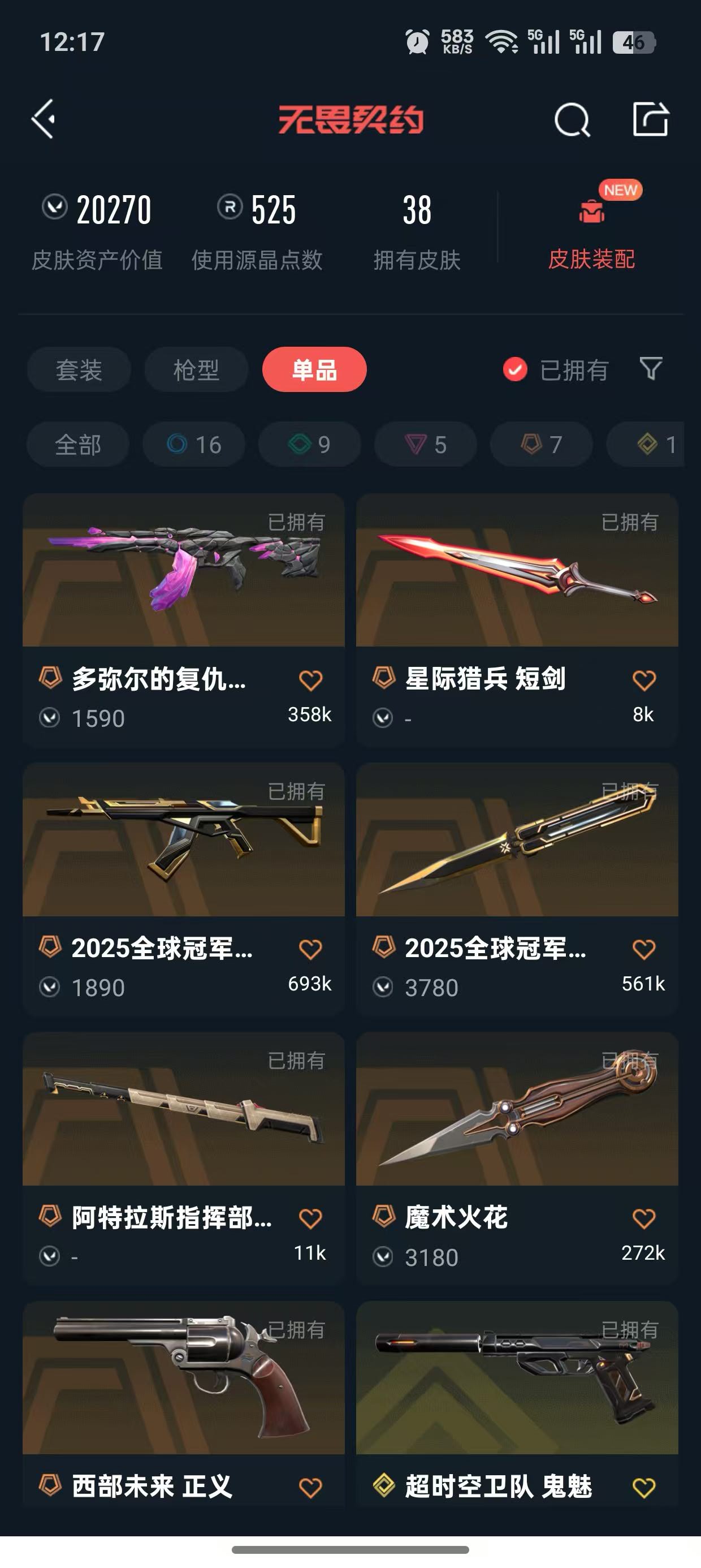 • 皮肤资产价值: 20270