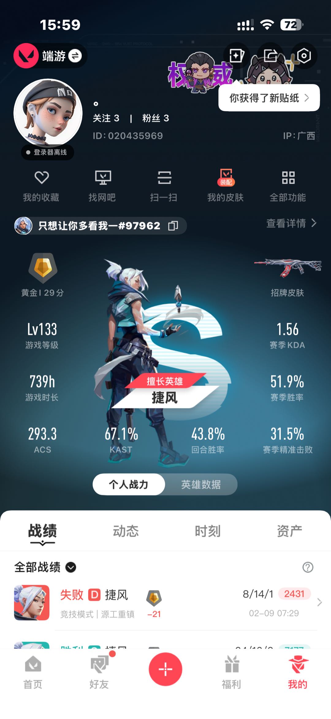 • 游戏区服:无畏契约-wegame / wegame / wegame