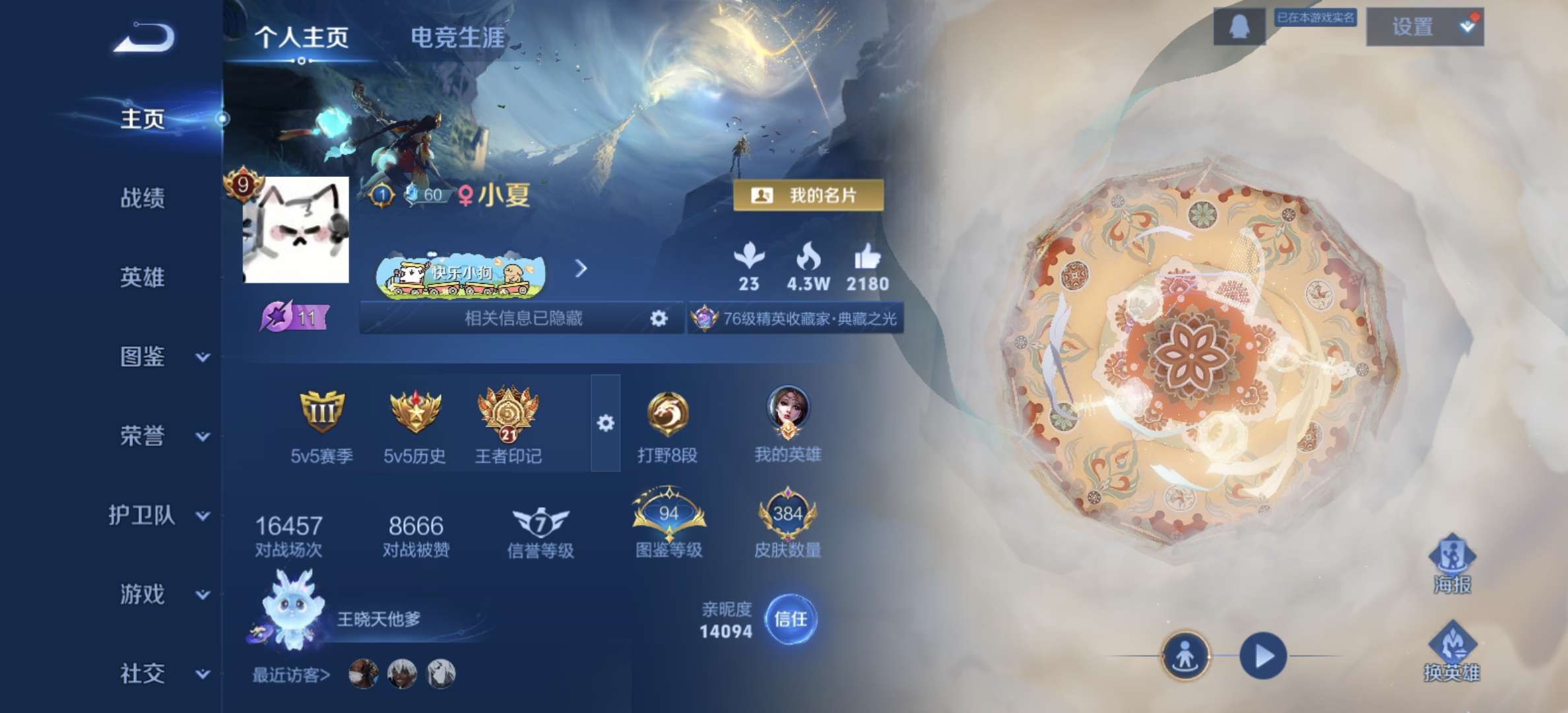 安卓Q区|V9 4典藏2无双 384皮 全英雄 高收藏号