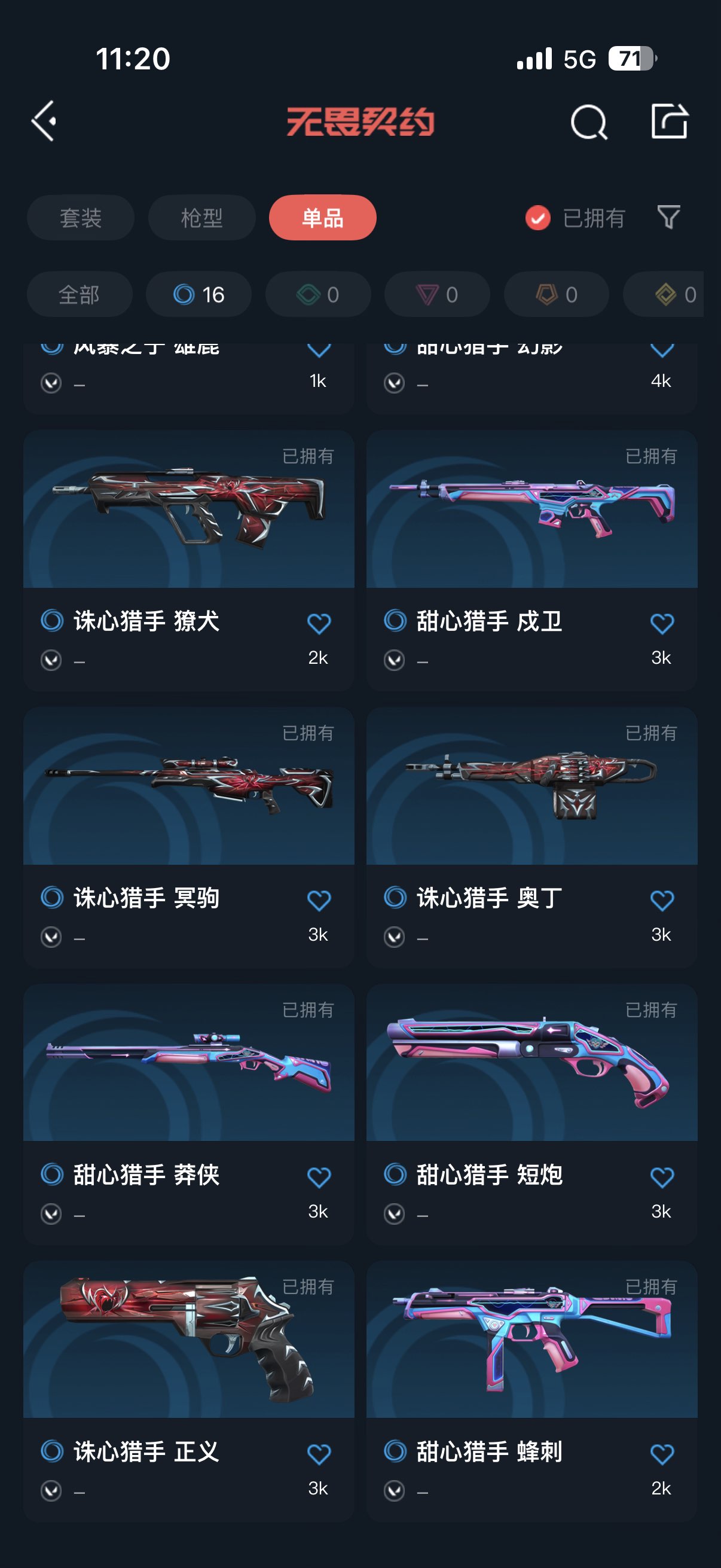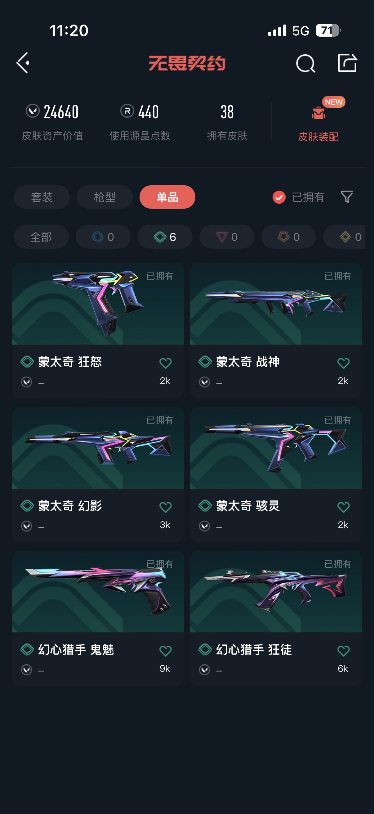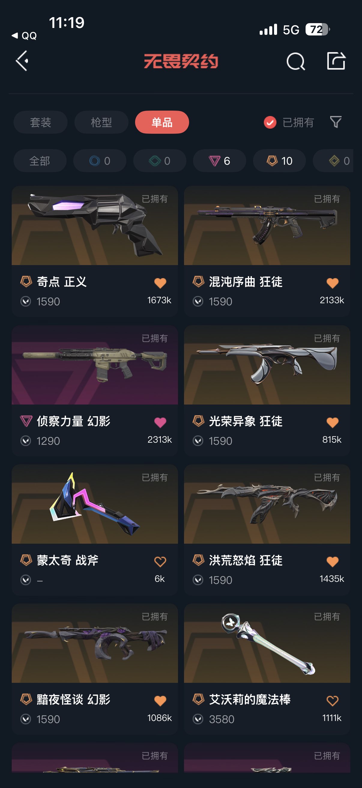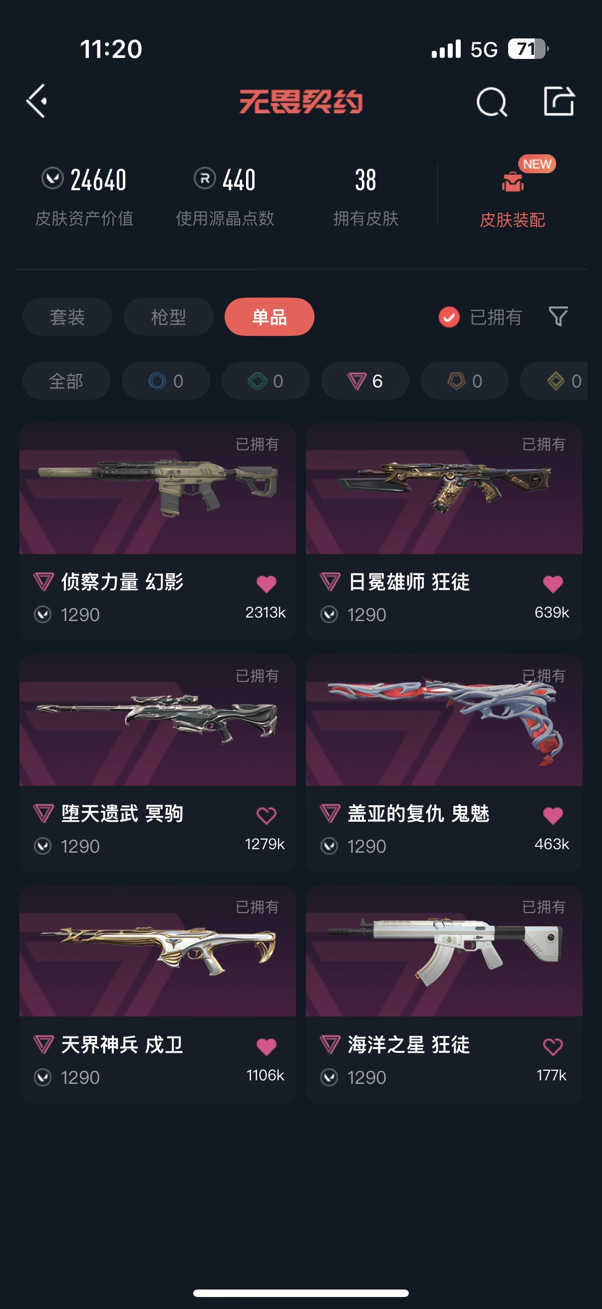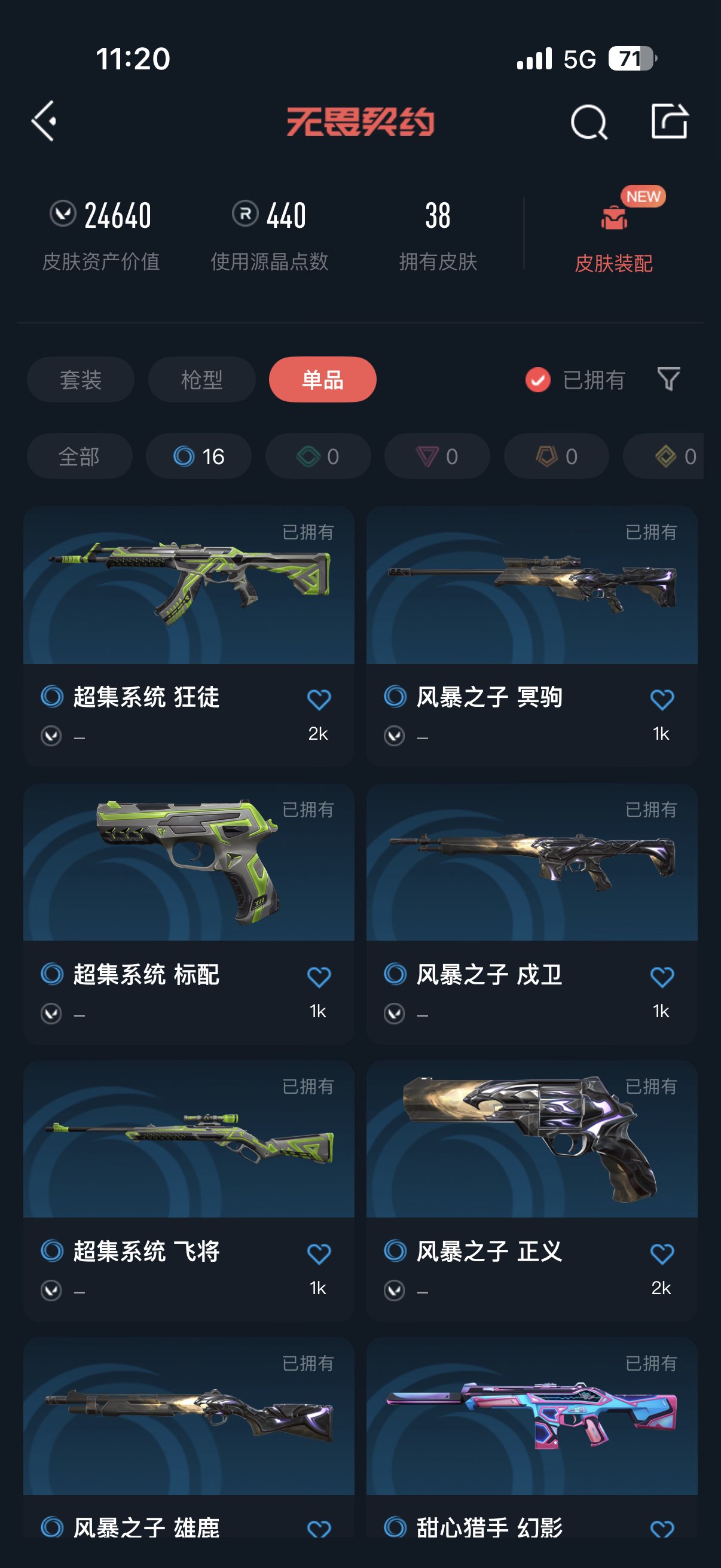 英雄15 武器皮肤数量38;洪荒怒焰 狂徒,侦察力量 幻影,RGX 11z Pro 狂徒,天界神兵 戍卫,混沌序曲 狂徒,光荣异象 狂徒,堕天遗武 冥驹,