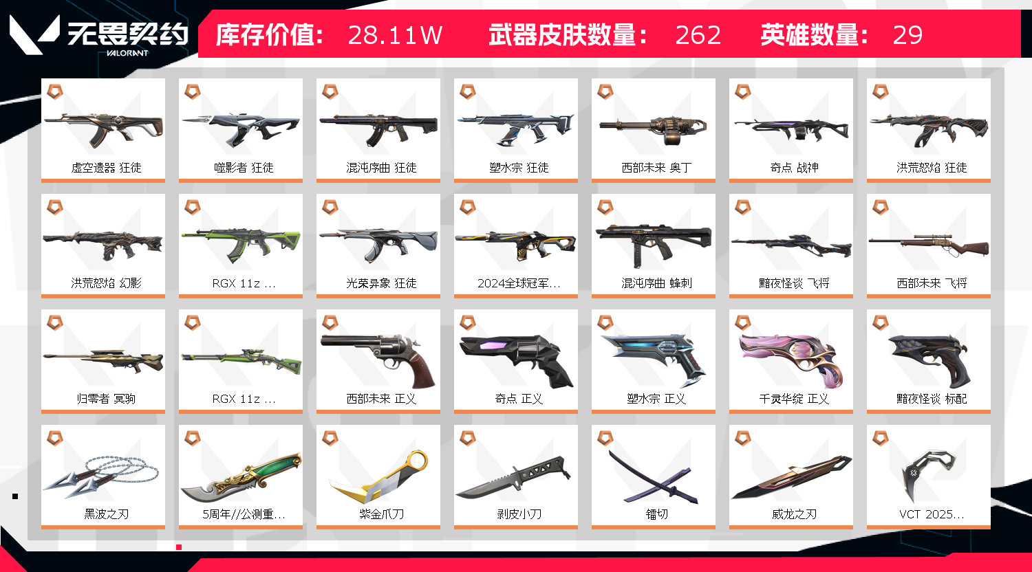 • 皮肤资产价值: 281070