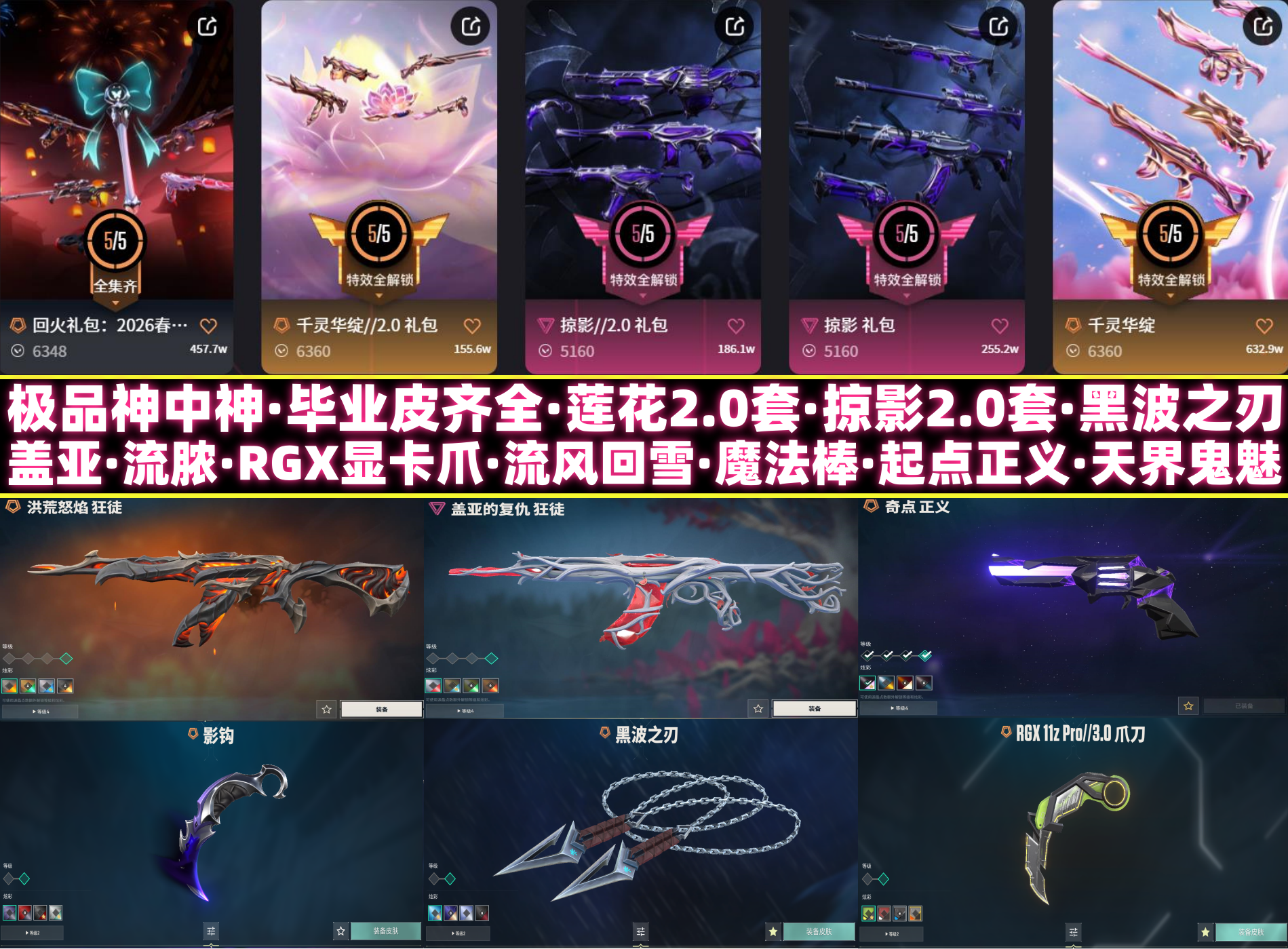 极品神中神✅毕业皮齐全特效拉满✅盖亚流脓✅莲花2.0流风回雪✅掠影2.0套影钩✅RGX显卡爪黑波之刃