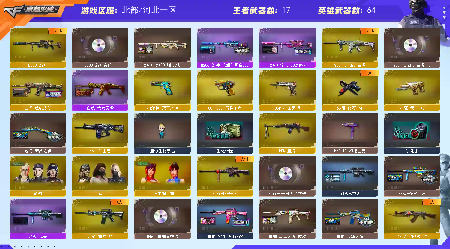 明星id李连杰幻神宠儿③皮音白虎套雷神荣耀之魄音冠特COP神工天巧;柯尔特-冠军之特,RPK-盘龙,M200-幻神,Scar Light-白虎,