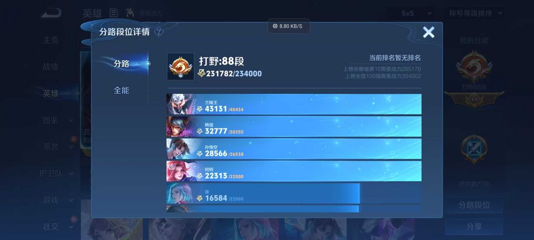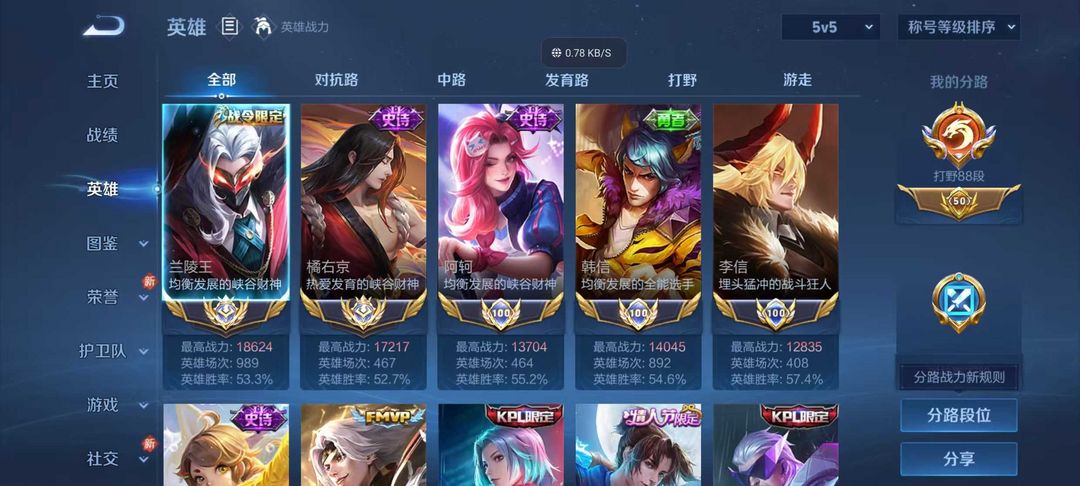立即租号首页 > 租号大厅 > 王者荣耀 > 标题写明区服/QQ > 巅峰开⭐88段打野⭐历史国服兰陵王橘右京⭐历史小国标阿轲韩信李信⭐带妹必备