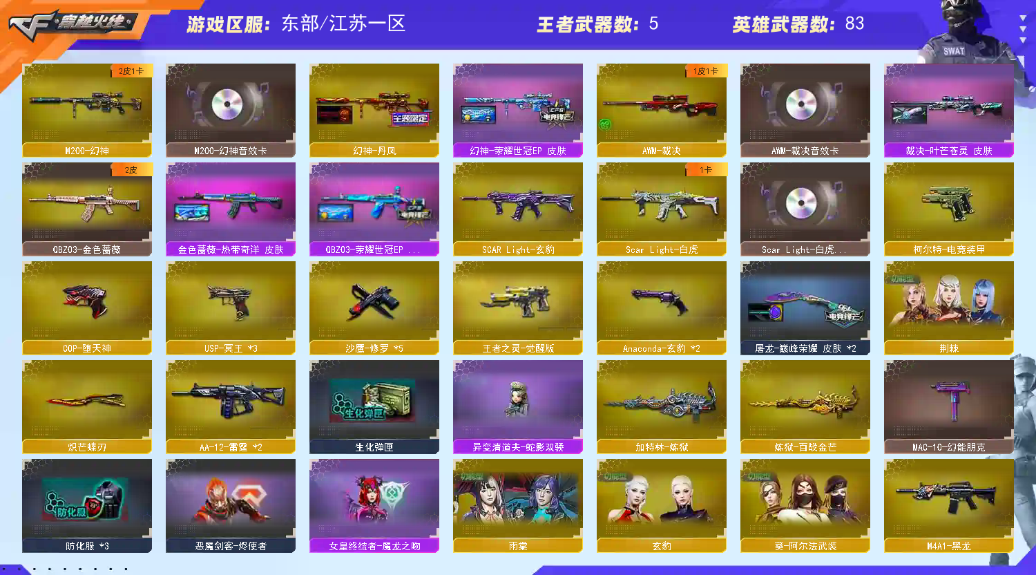 • 游戏区服:穿越火线 / 东部 / 江苏一区