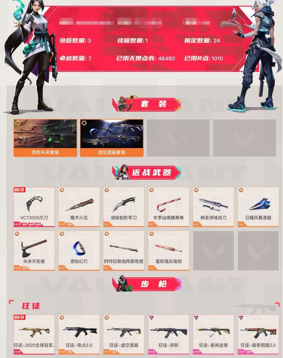 首页 > 租号大厅 > 无畏契约-wegame > wegame/wegame > 可排位27杀挤号【开挂必起诉】虚空套装✨西部套装✨VCT爪刀✨BLG标配✨25冠军狂徒✨魔术火花