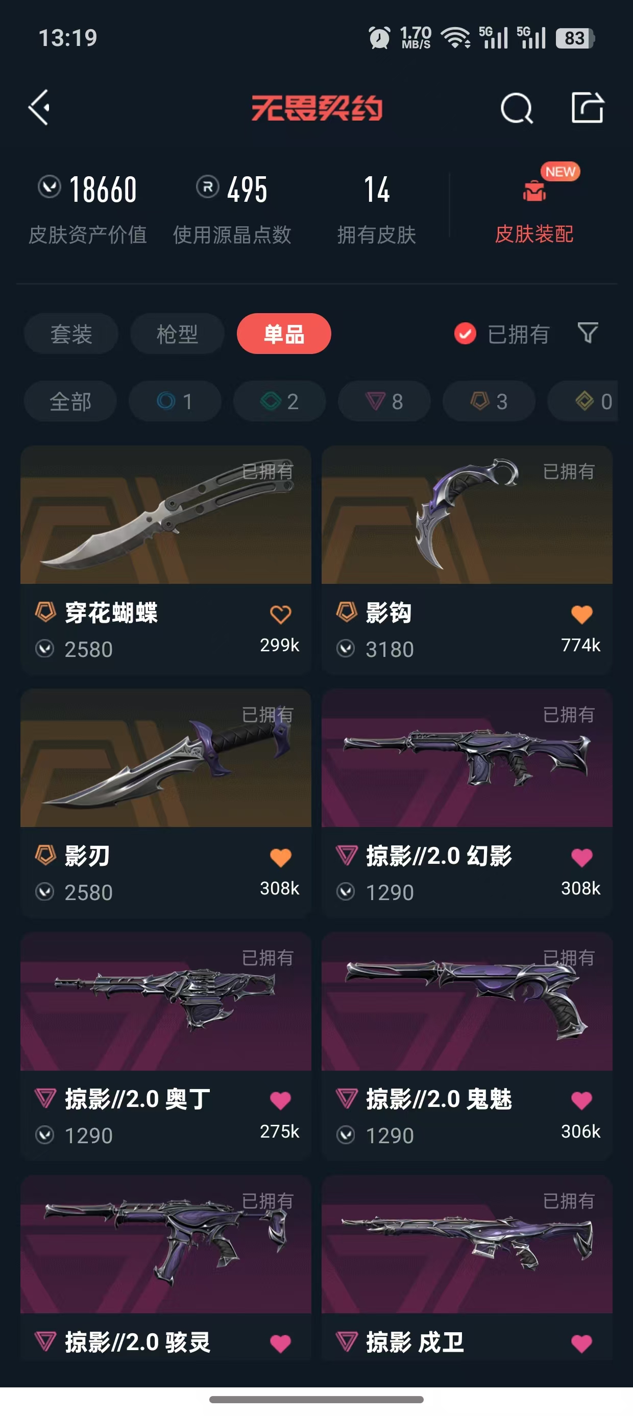 首页 > 租号大厅 > 无畏契约-wegame > wegame/wegame > 冻结秒解✨掠影2.0套✨掠影套✨穿花蝴蝶✨幻心猎手 鬼魅✨