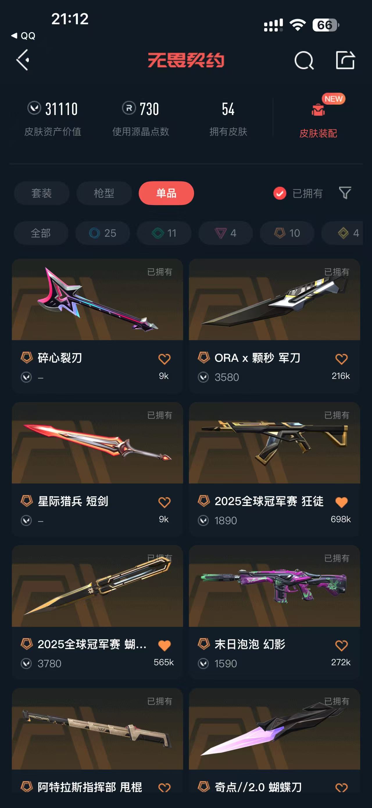 冻结秒解✨25冠军套✨颗秒套✨神中神罚套✨奇点蝴蝶刀✨西部未来 正义✨末日泡泡 幻影✨