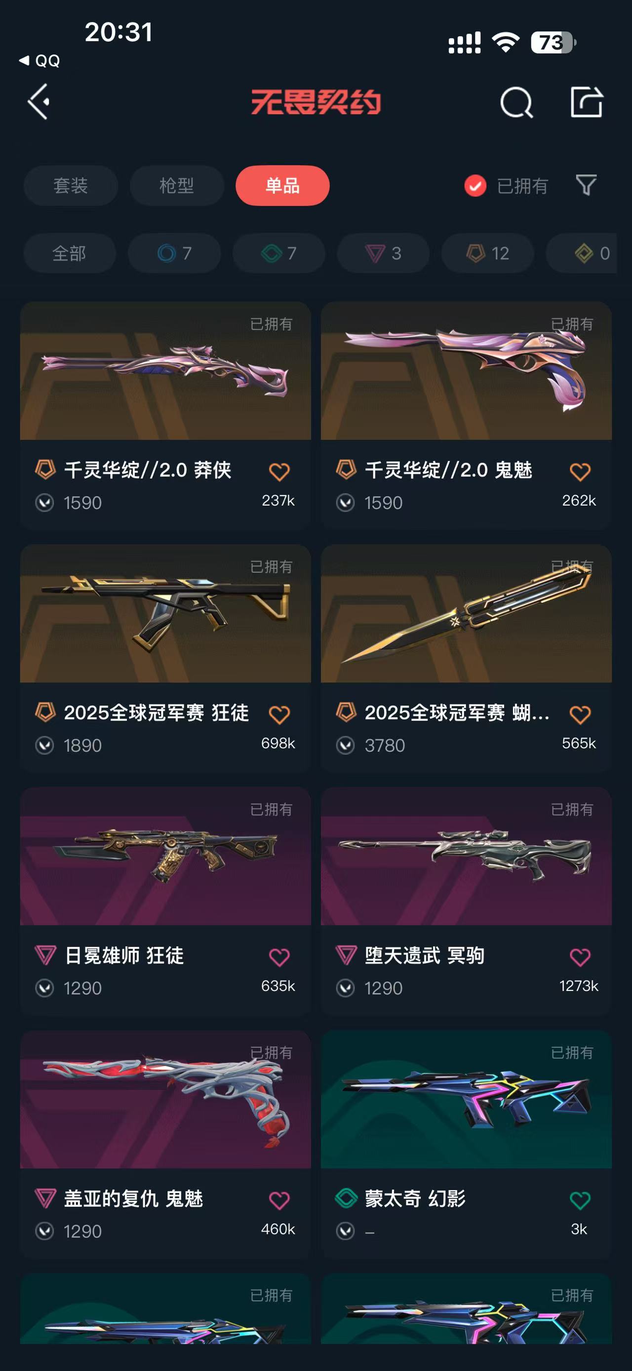 首页 > 租号大厅 > 无畏契约-wegame > wegame/wegame > 冻结秒解✨25冠军套✨千灵华绽2.0套✨黑波之刃✨艾沃莉的魔法棒✨暗夜怪谈 幻影✨堕天遗武 冥狙✨