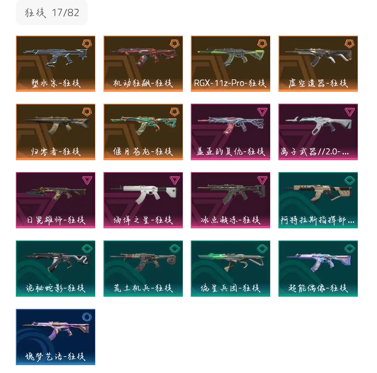 ......;西部未来 奥丁,黑波之刃,紫金爪刀,剥皮小刀,盖亚的复仇 狂徒,虚空遗器 狂徒,RGX 11z Pro 狂徒,