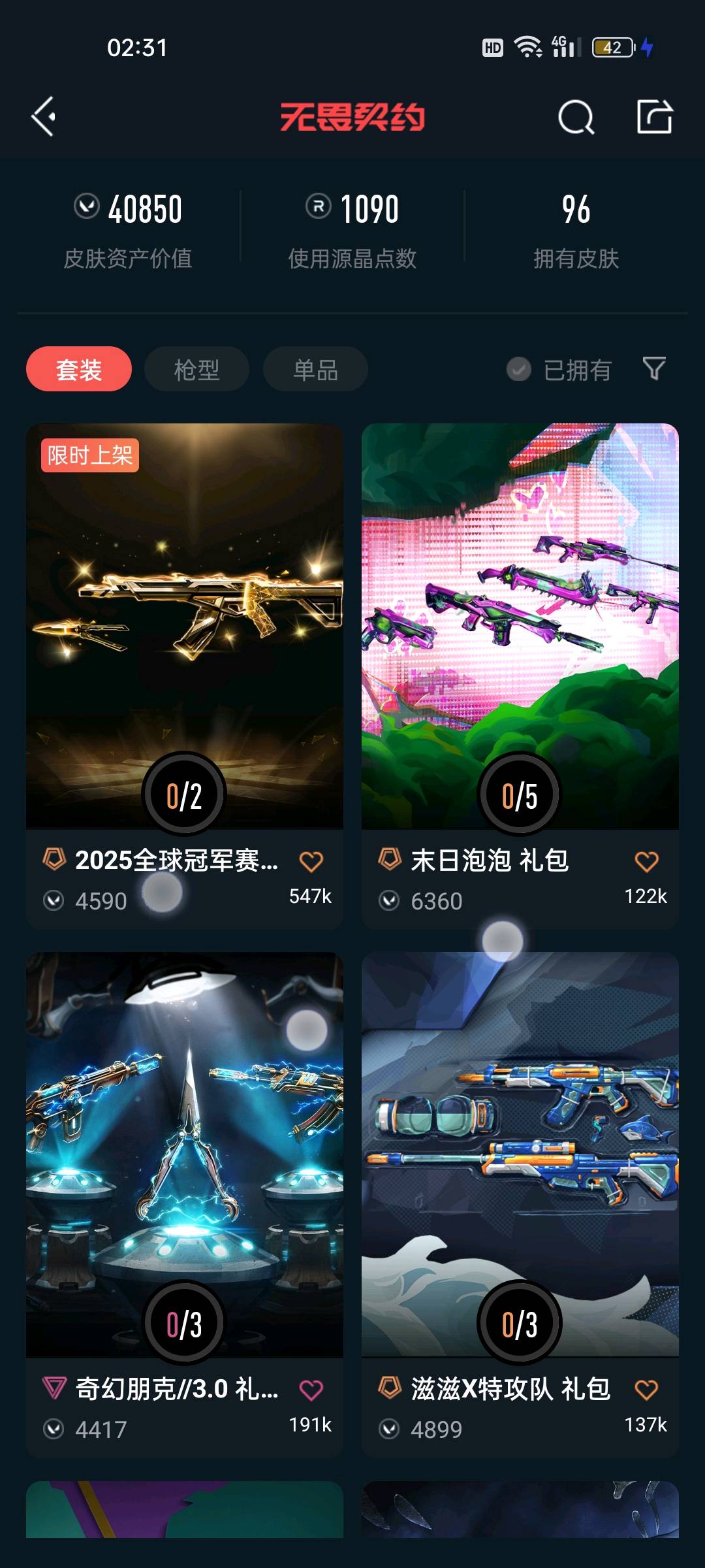 • 皮肤资产价值: 40850