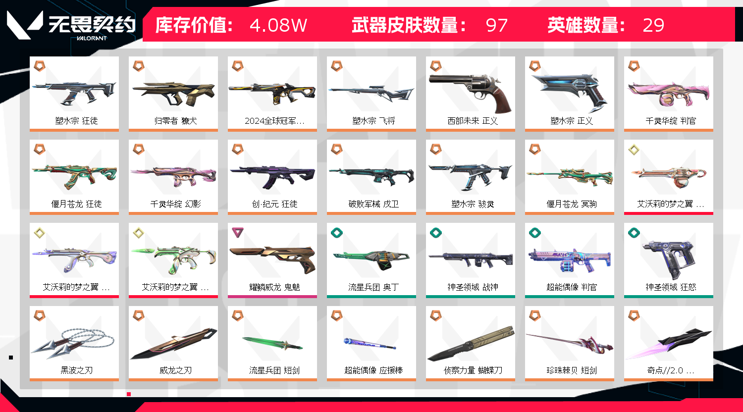 首页 > 租号大厅 > 无畏契约-wegame > wegame/wegame > 英雄25 武器皮肤数量97