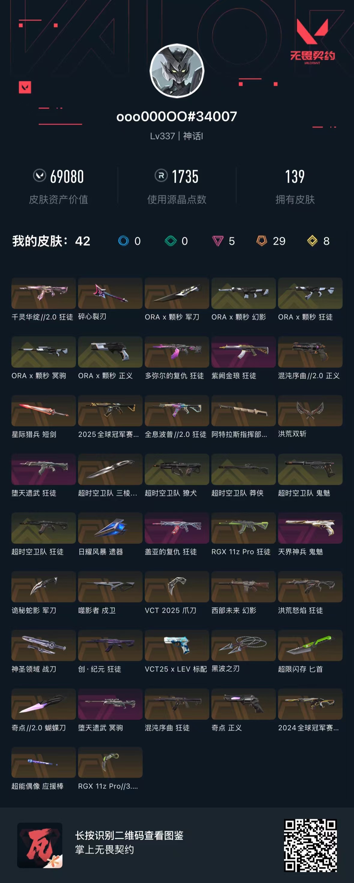 此账号和平台属于合作关系,已经备案。如果账号封号或者什么的,商户将会协助平台然后报警。 收藏好评!由于异地登录保护机制,部分客户在使用客户端自动上号时会出现密码错误,注意本号密码不会错误,请多尝试5-6次!本账号已经过虚拟财产-认1证。请素质租号,文明游戏,谢谢大家配合!!!1;黑波之刃,VCT 2025 爪刀,盖亚的复仇 狂徒,洪荒怒焰 狂徒,紫阙金琅 狂徒,RGX 11z Pro 狂徒,堕天遗武 狂徒,