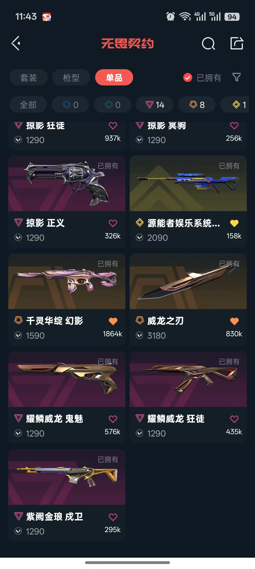 • 武器皮肤数量: 94
