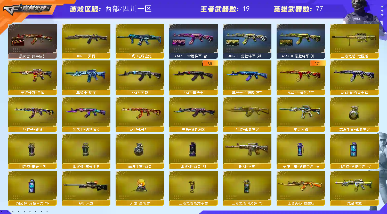 • 游戏区服:穿越火线 / 西部 / 四川一区