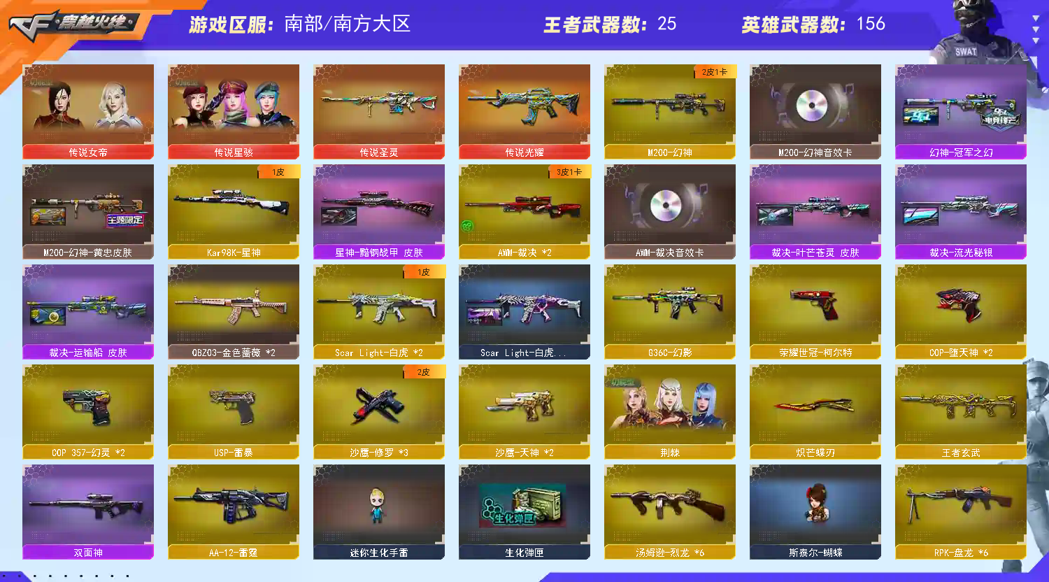 【南.部】天花板♥女帝星骇幻神三件套星神带皮♥裁决三件套白虎qbz幻影满质量手枪蝴蝶刀生化满配;USP-雷暴,荣耀世冠-柯尔特,炽芒蝶刃,传说星骇,传说女帝,RPK-盘龙,QBZ03-金色蔷薇,