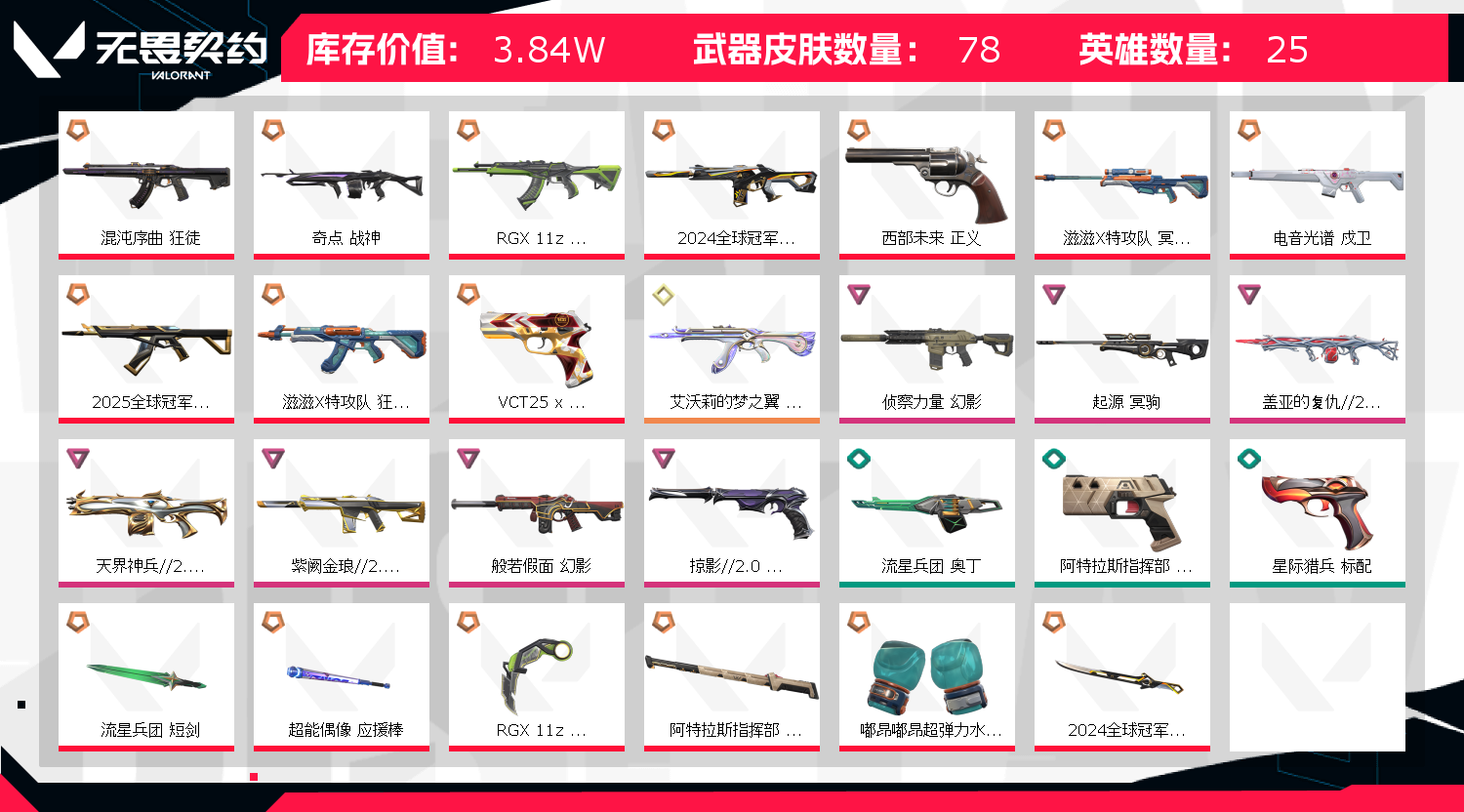 首页 > 租号大厅 > 无畏契约-wegame > wegame/wegame > 25冠军狂徒嘟昂全套滋滋X特攻队冥驹24冠军套起源冥驹紫阙金琅显卡刀混沌序曲狂徒般若假面幻影