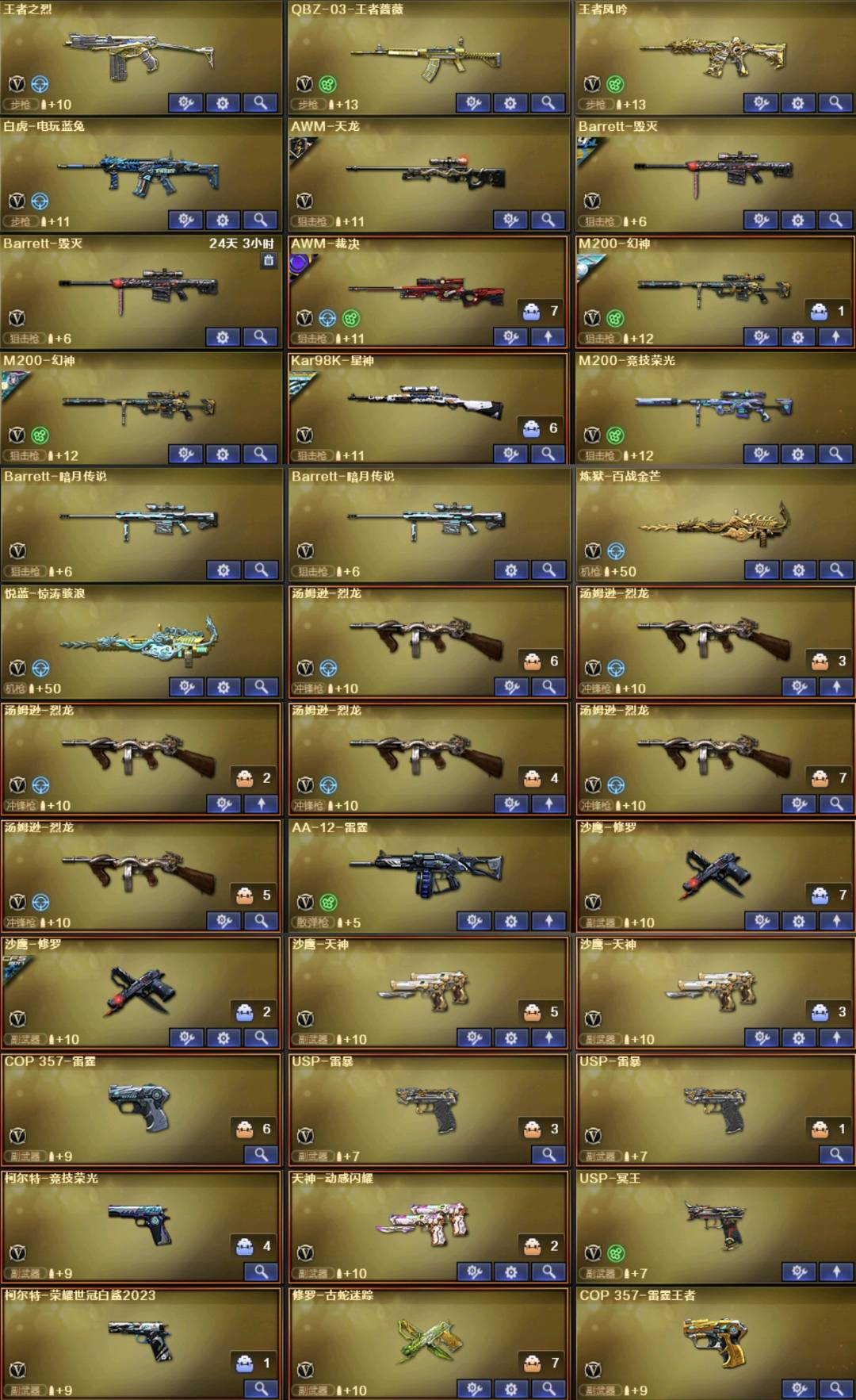 。。。。。;USP-雷暴,柯尔特-荣耀世冠白鲨2023,传说幽冥,柯尔特-冠军之特,炽芒蝶刃,Knife-冠军之刃,电竞教官-云悠悠,