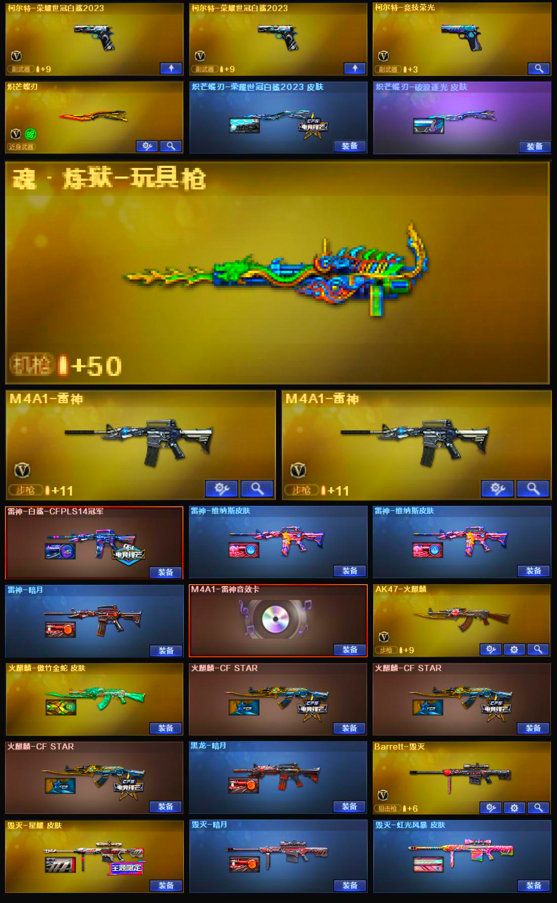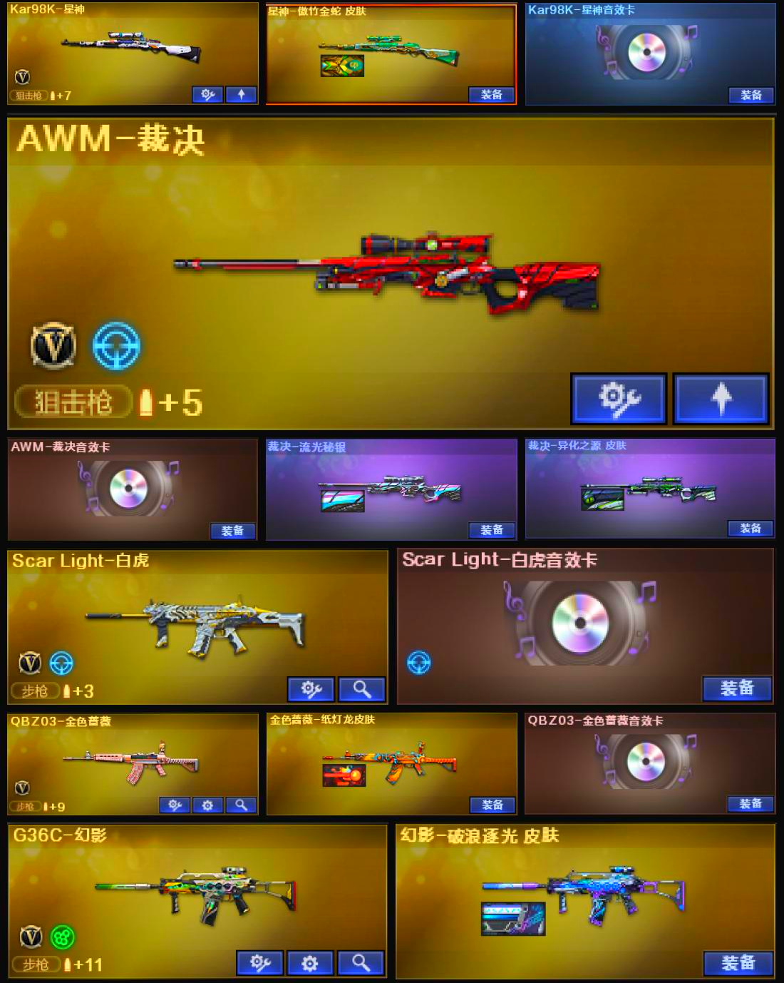 传说幽瞳3幻神5皮♥星神三件套♥裁决流光带卡♥白虎qbz带卡G36带皮♥三柯尔特蝴蝶刀带皮主流全;柯尔特-荣耀世冠白鲨2023,传说幽冥,炽芒蝶刃,电竞教官-云悠悠,QBZ03-金色蔷薇,传说幽瞳,G36C-幻影,