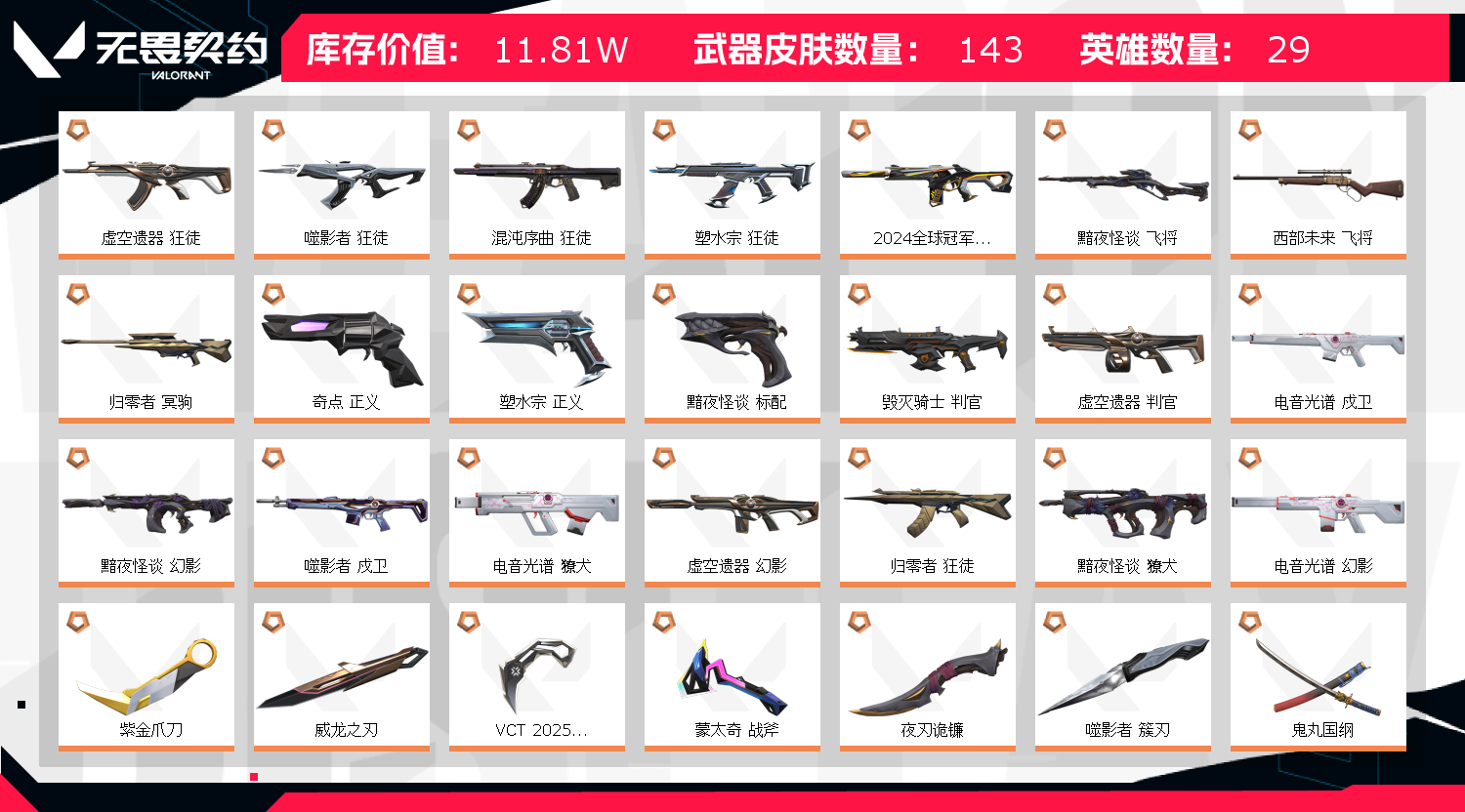 11.8万库存♥24冠军套♥塑水宗♥vct2026刀♥暗夜怪谈套♥鬼丸套♥电音套♥弑影套♥虚空套