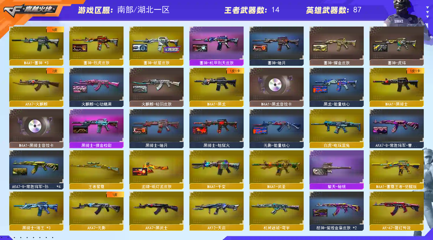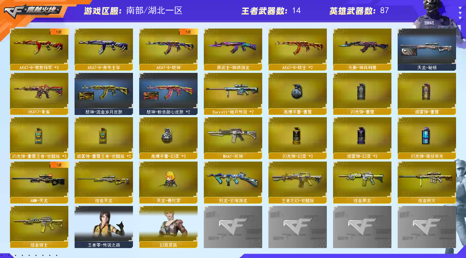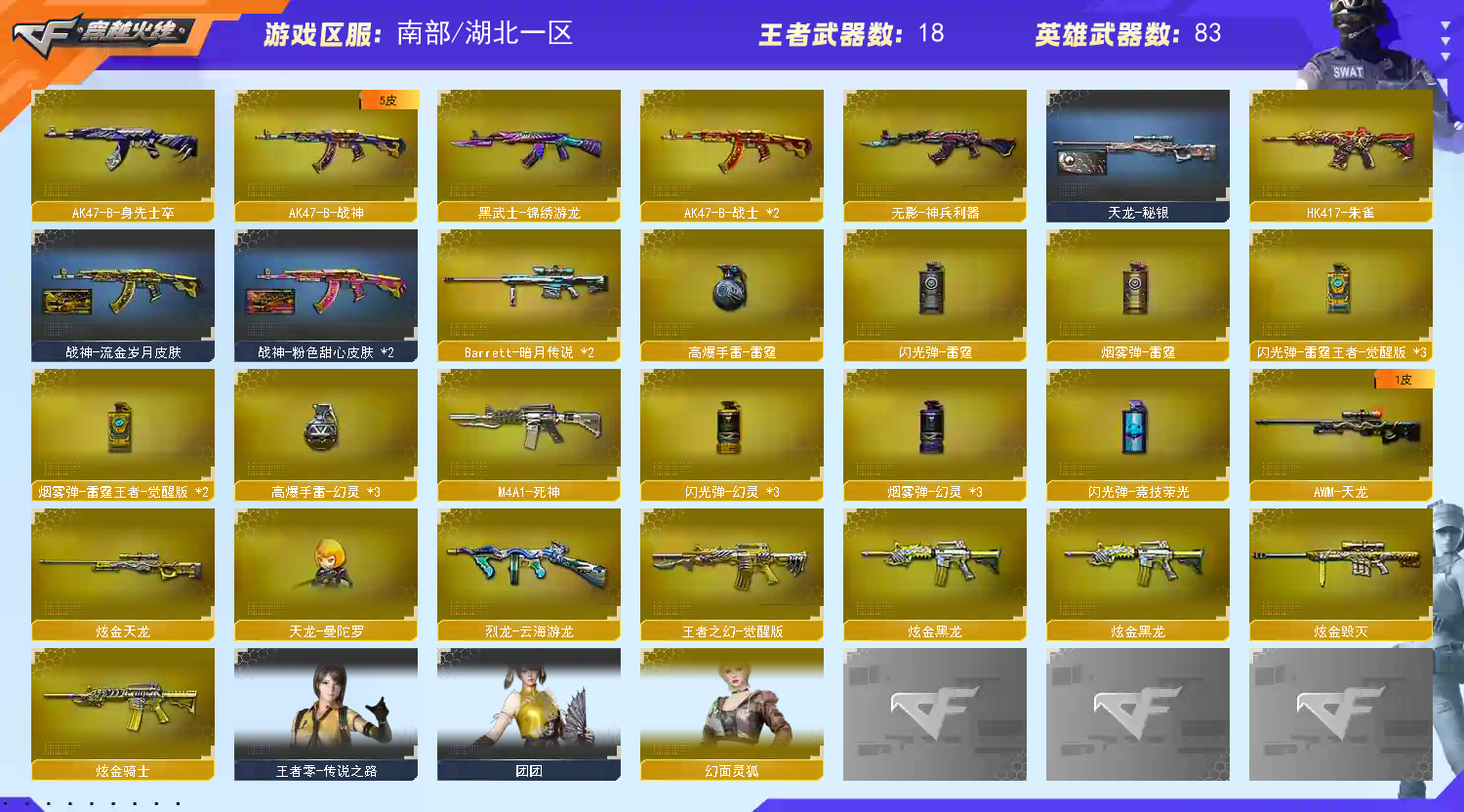 • 游戏区服:穿越火线 / 电信区 / 湖北一区