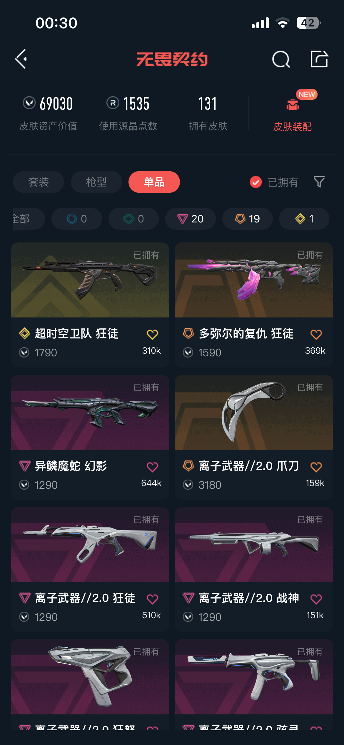 • 皮肤资产价值: 69030