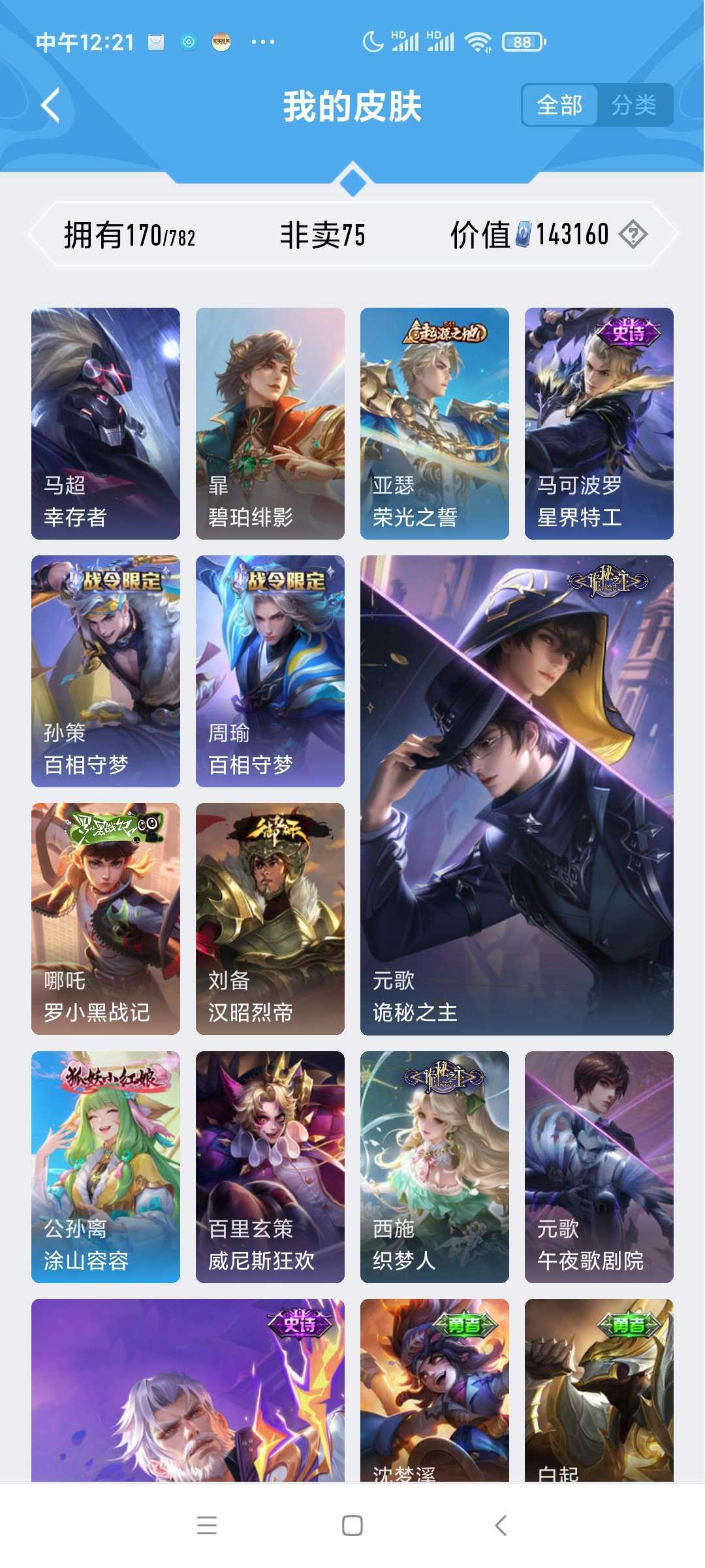 凯无双♥纵目迁山♥诡秘之主♥万灵启世♥马超琥珀♥霜月尽♥电光澜♥韩信典藏♥伽罗琥珀岱宗