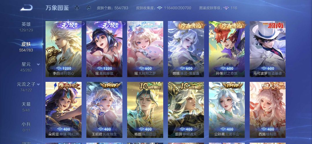 V11✨780皮肤✨马年全皮✨颠倒童话✨千魇归渊✨无相✨神罪✨山海经天机白泽✨全套死神联动✨全套穆夏✨馥梦繁花✨美神临世✨全荣耀水晶✨全无双