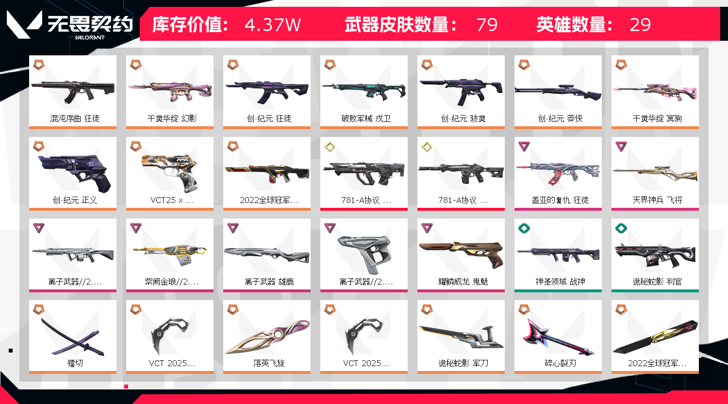 冻结及时联系号主 看到很快解冻 🈲炸鱼;镭切,VCT 2025 爪刀,盖亚的复仇 狂徒,混沌序曲 狂徒,天界神兵 飞将,