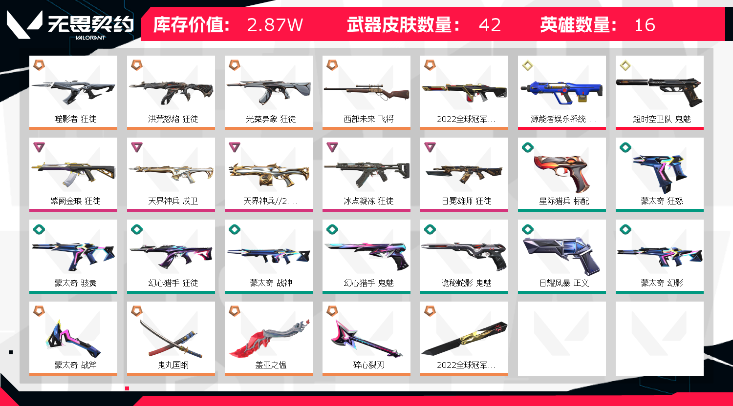 首页 > 租号大厅 > 无畏契约-wegame > wegame/wegame > 冻结秒解✨22冠军套✨鬼丸国纲✨光荣异象狂徒✨洪荒怒焰狂徒✨噬影者狂徒✨
