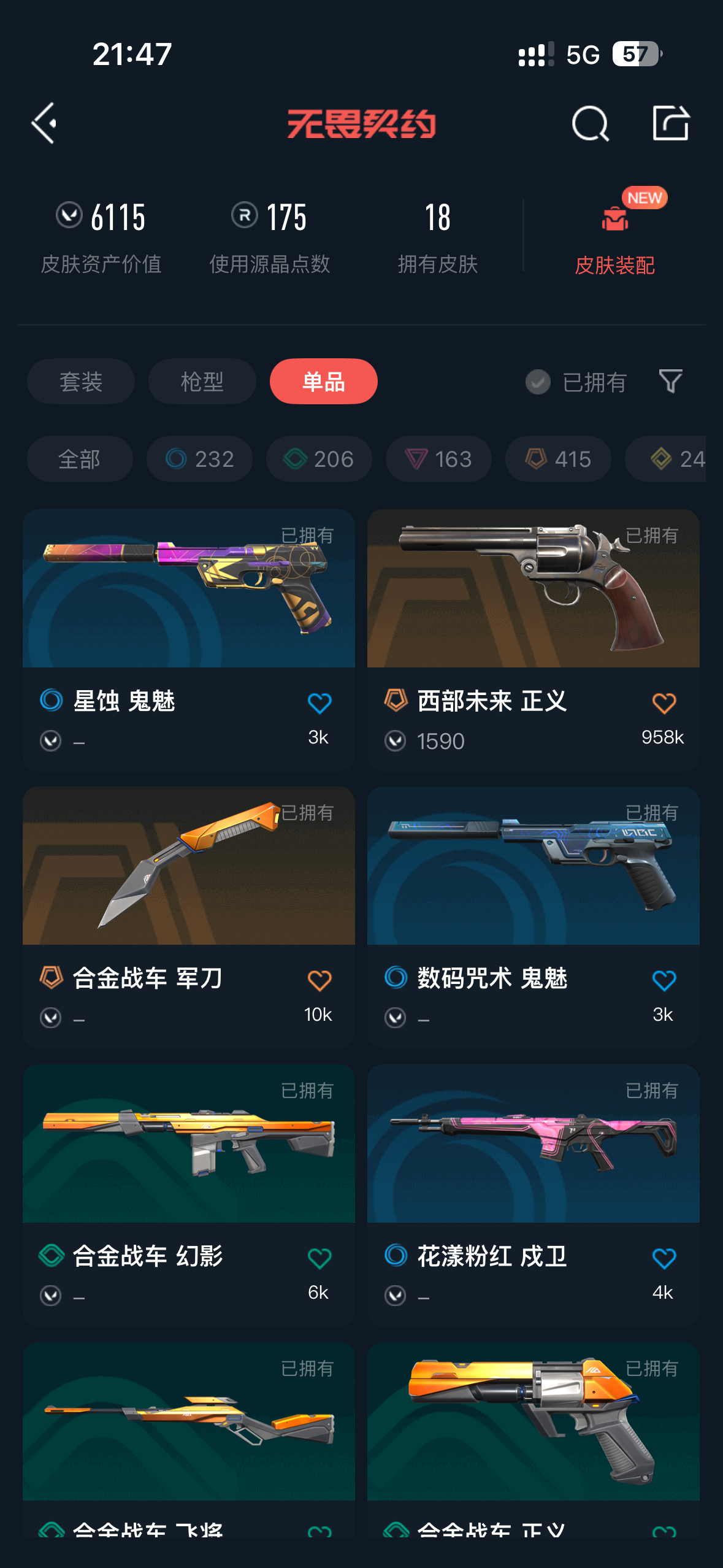 • 皮肤资产价值: 6115