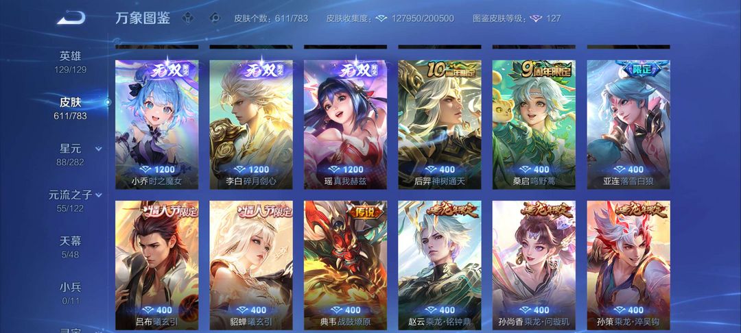 历史大国赵云✨国服孙悟空✨12典藏3无双✨瑶无双真我赫兹✨小乔无双✨满龙限✨60段打野
