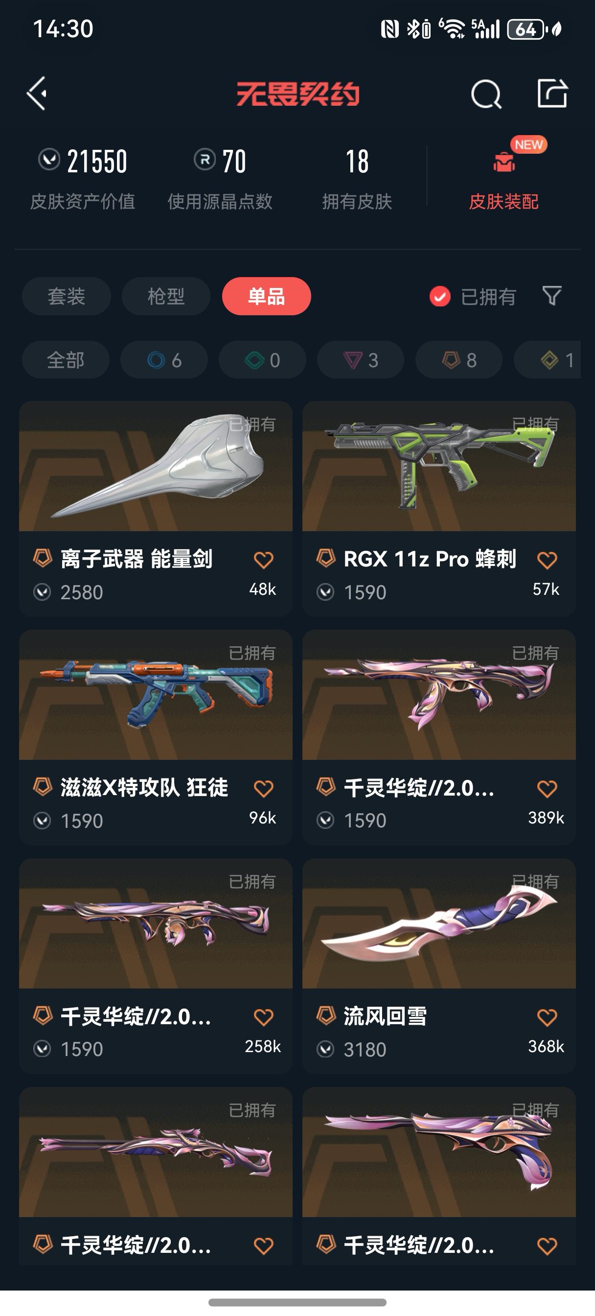 • 皮肤资产价值: 21550