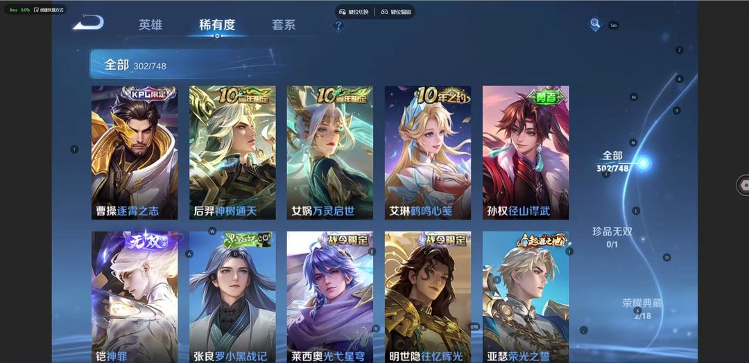v10、537皮6水4无双、安琪拉-颠倒童话·魔镜、朵莉亚-神骥、遇见神鼓、齐天大圣、白虎志、韩信荣耀典藏、73传说、时之魔女、瑶无双、青丘、九尾、神器明辉仪