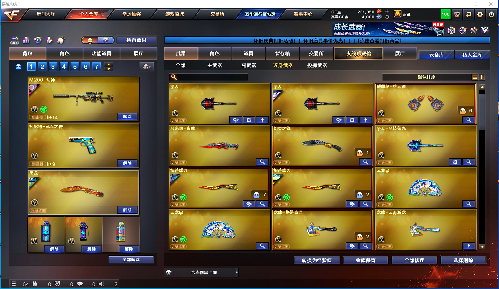 142V传说辉光夜影影煞幻神4皮宠儿星火带卡星神冠军带卡六盘炼狱百战六烈小火龙多副武器双炽芒蝶刃;USP-雷暴,柯尔特-无冕之王,荣耀世冠-柯尔特,柯尔特-冠军之特,炽芒蝶刃,Knife-冠军之刃,传说影煞,