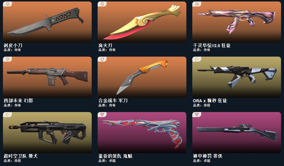 离火刃套装,无畏启程套装,离火刃套装,剥皮小刀,合金战车 军刀,离火刃,盖亚的复仇 鬼魅,离子武器//2.0 骇灵,ORA x 颗秒 狂徒,神中神罚 莽侠,数码咒术 战神