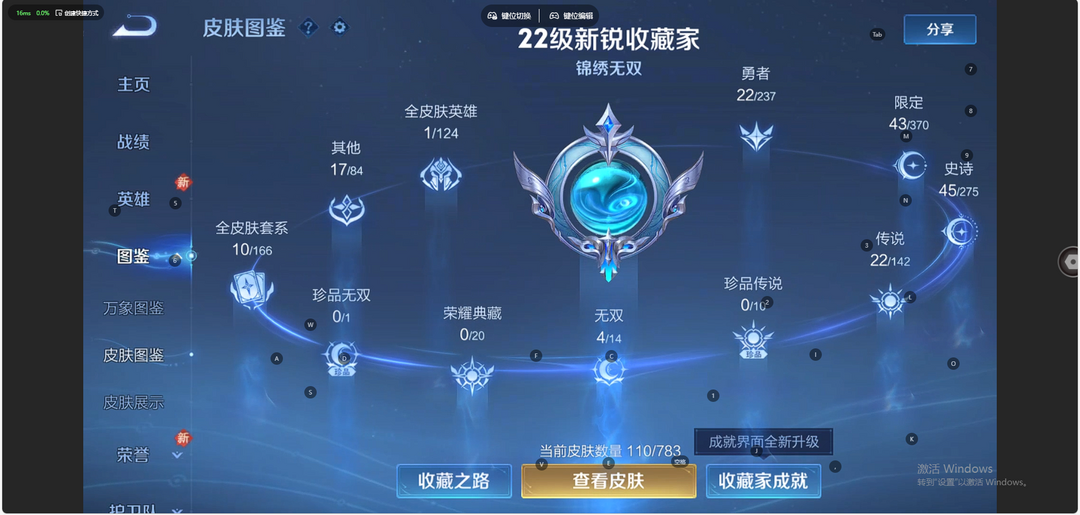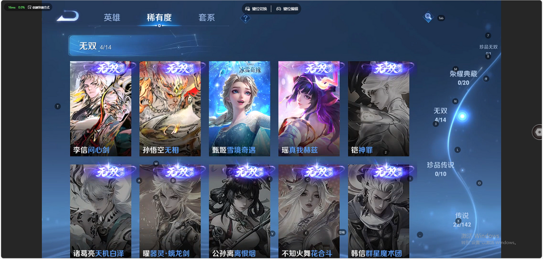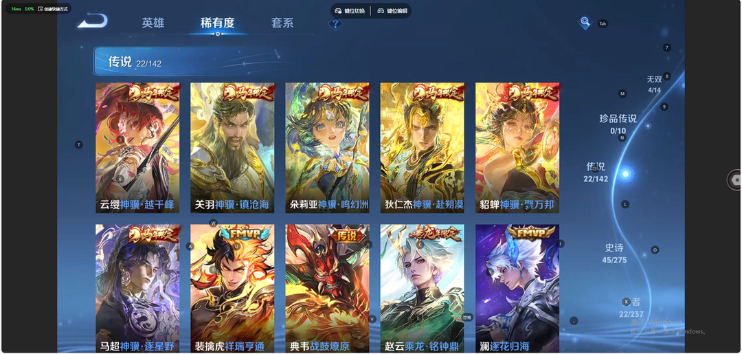 【非云直上】V10★皮肤榜一★539皮满典藏★鲁班时之奇旅会员★虞姬黛羽霜翎星元★吕布白金战神★全能大师★多金标★个性按键