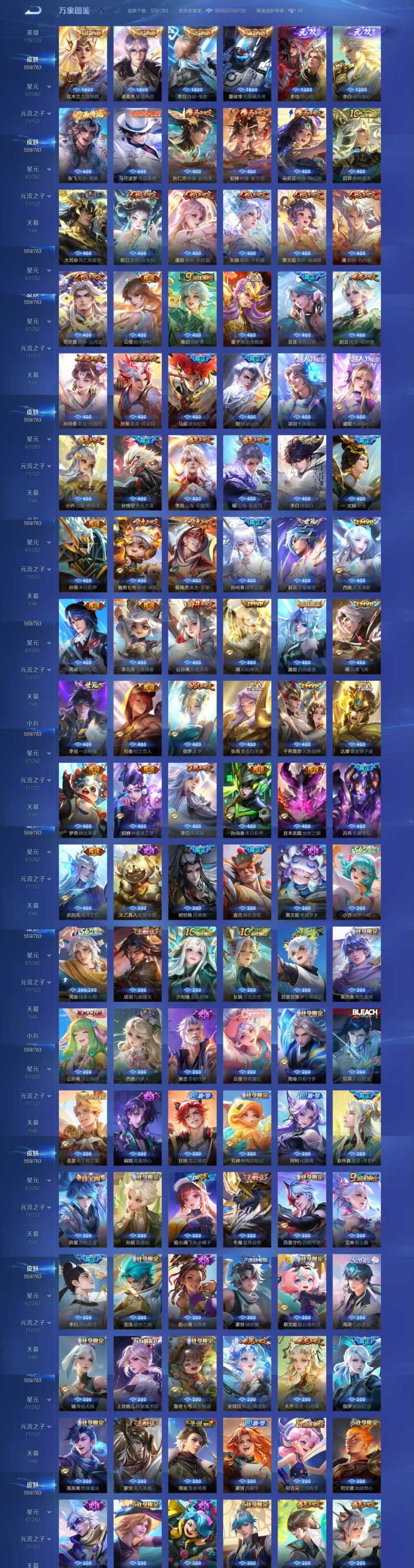 v10、12水562皮、死亡执政官、刘备星传说时之思念、小兵皮肤大耳狗甜茶、瑶无双真我赫兹、愿照·九州拓、怪盗基德、画中仙、至尊宝、凤求凰、神威、天魔缭乱