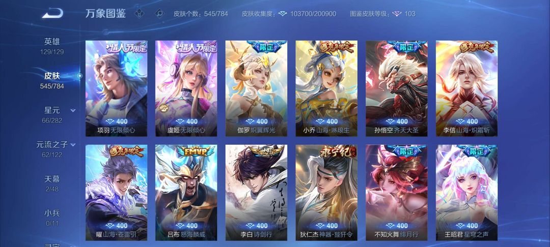 无双贵族V10♥781皮肤♥马年限定♥安琪拉典藏颠倒童话魔镜♥李元芳累充星君娄金♥李信无双♥不卡非☁166区横行霸道♥先看最后一张图找客服上号