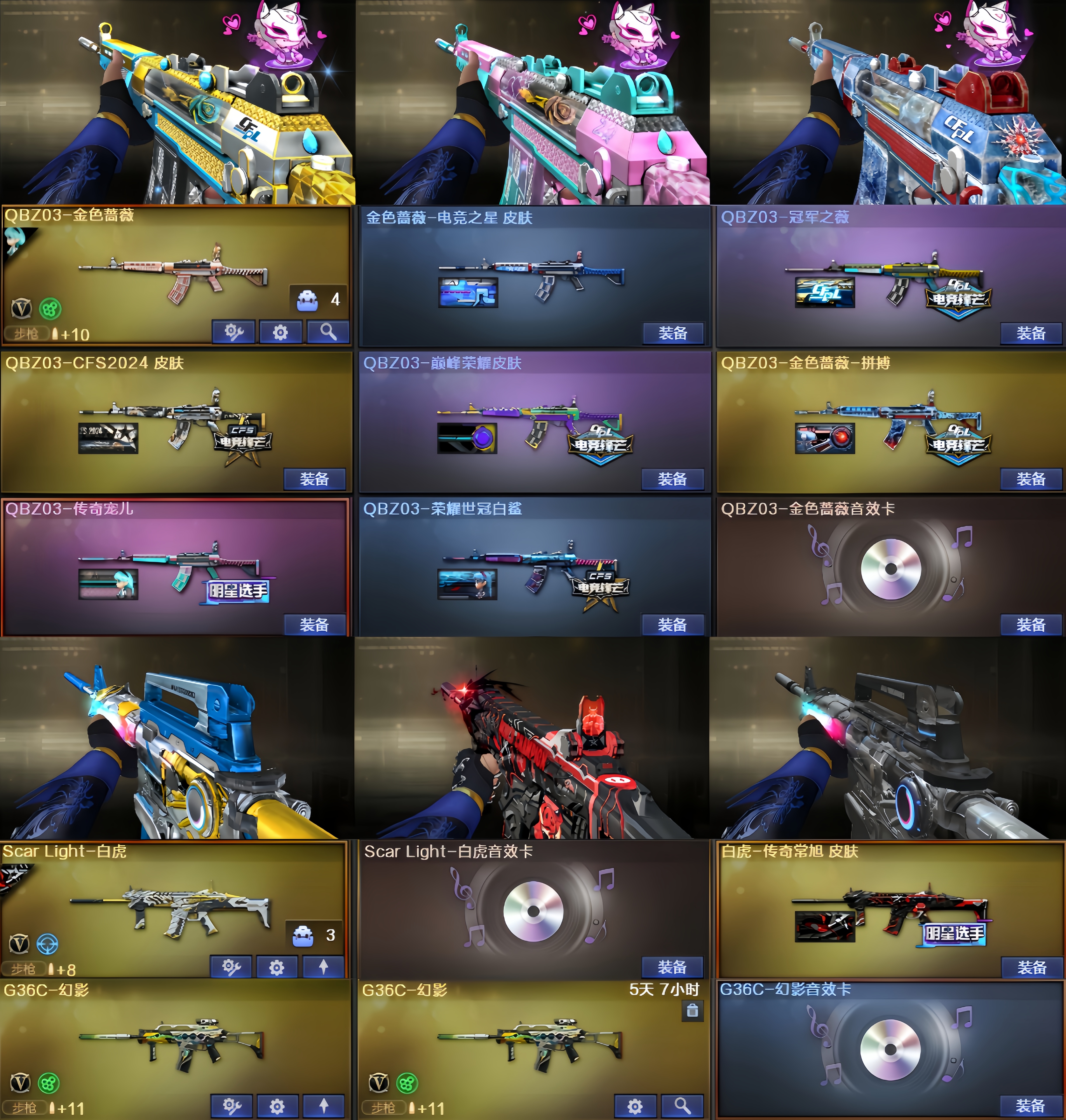 首发幻神YZK白虎常旭❤传说艾丽莎6柯尔特❤G36C幻影裁决三件套❤QBZ宠儿冠军皮肤