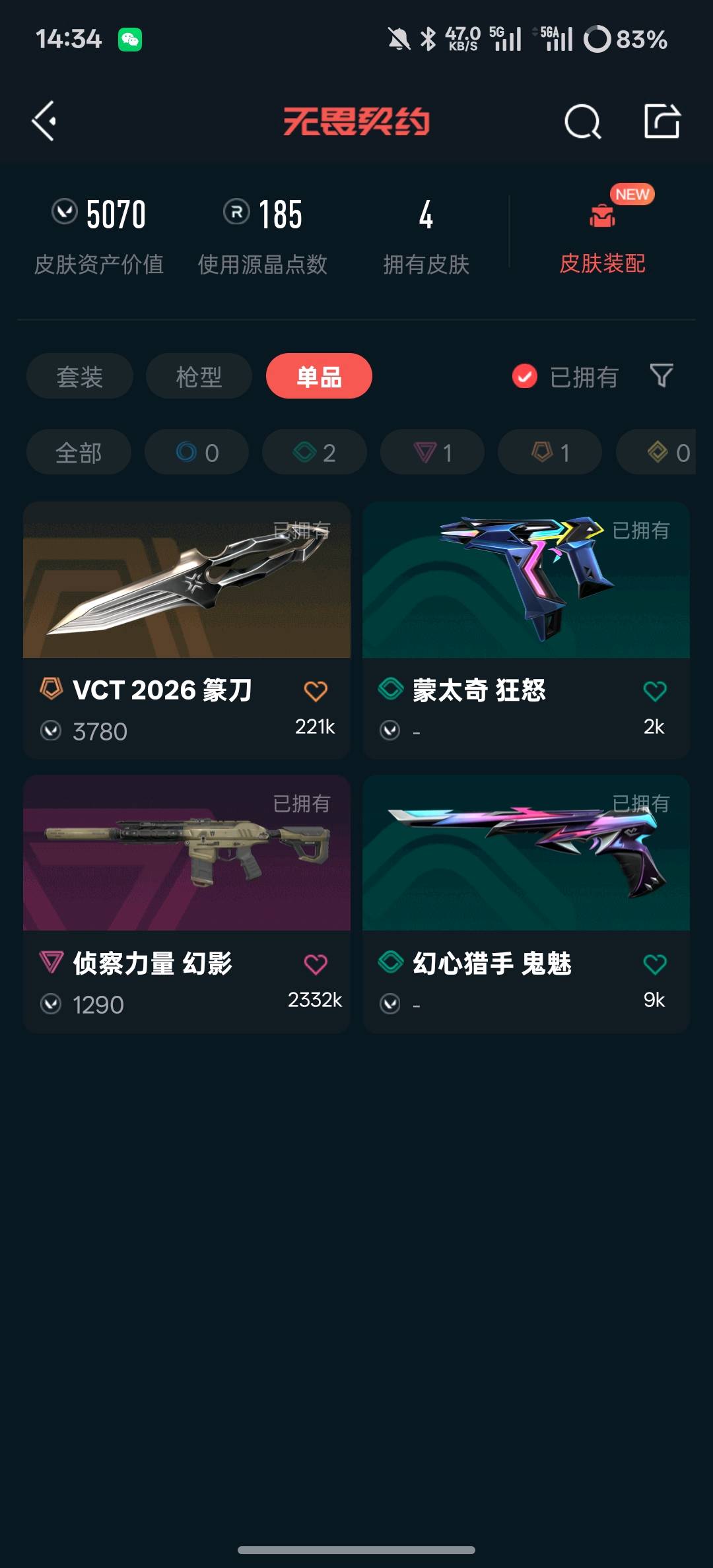 • 皮肤资产价值: 5070