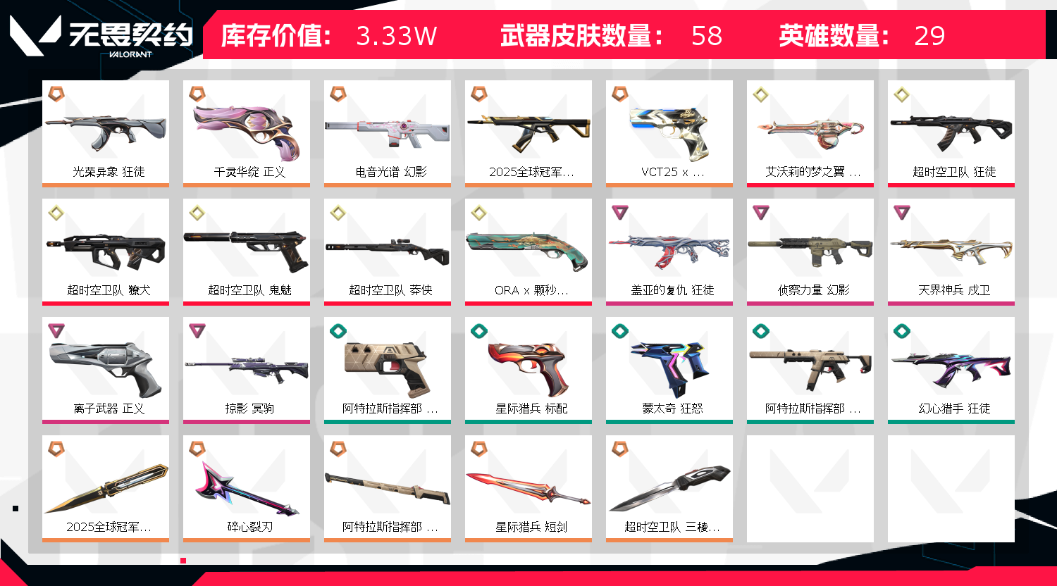 • 皮肤资产价值: 33300