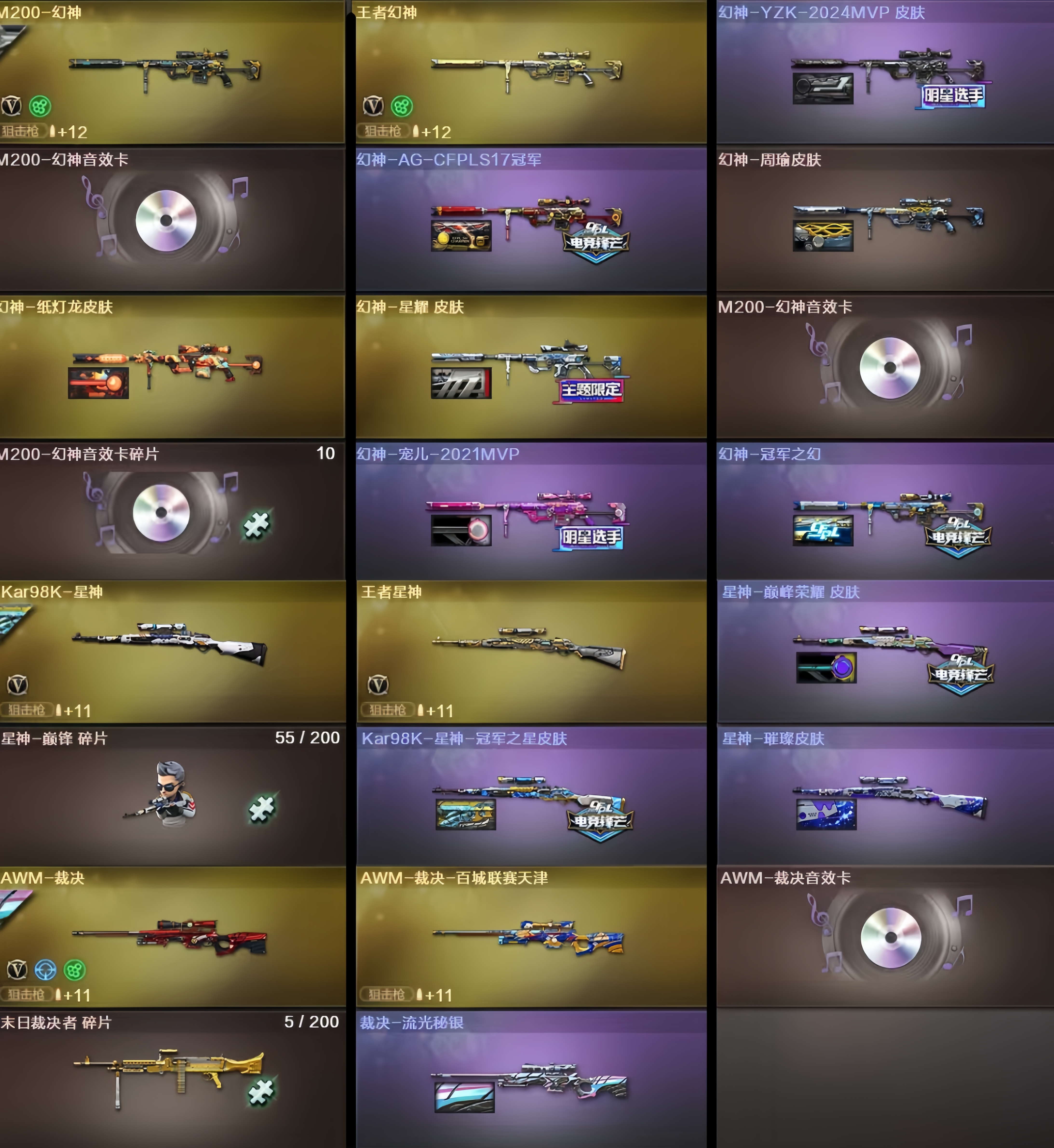 传说幽瞳传说灵眸传说幽瞳传说灵眸传说幽瞳传说灵眸;USP-雷暴,柯尔特-无冕之王,荣耀世冠-柯尔特,柯尔特-荣耀世冠白鲨2023,柯尔特-冠军之特,炽芒蝶刃,Knife-冠军之刃,