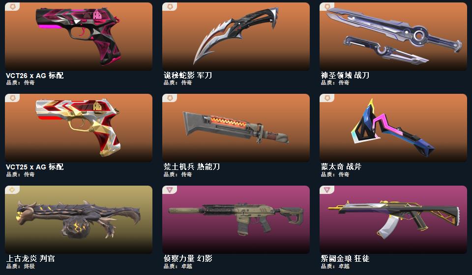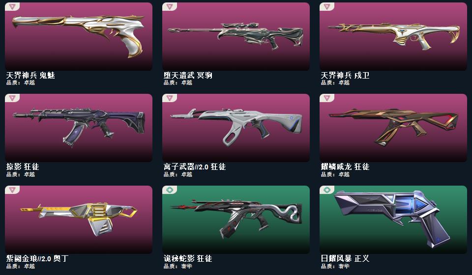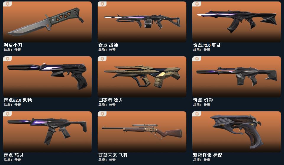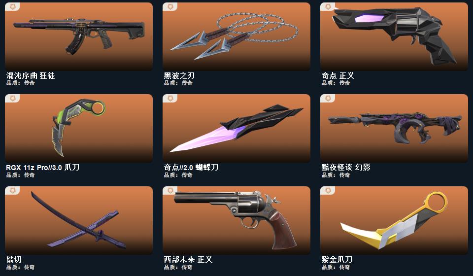 RGX 11z Pro//3.0 爪刀 蒙太奇 战斧,诡秘蛇影 军刀,神圣领域 战刀,未来开拓者,紫金爪刀,镭切,黑波之刃,荒土机兵 热能刀,,剥皮小刀,奇点//2.0 蝴蝶刀 蒙太奇 战神,奇点 战神,末日之翼 奥丁,西部未来 奥丁,神圣领域 战神,纳米打击 奥丁,紫阙金琅//2.0 奥丁,浮光跃金 战神 超集系统 飞将,风暴之子 冥驹,诡秘蛇影 莽侠,末日之翼 飞将,星云暗涌 冥驹,西部未来 飞将,月球哨兵 莽侠,归零者//2.0 莽侠,堕天遗武 冥驹,荒土机兵 冥驹,超