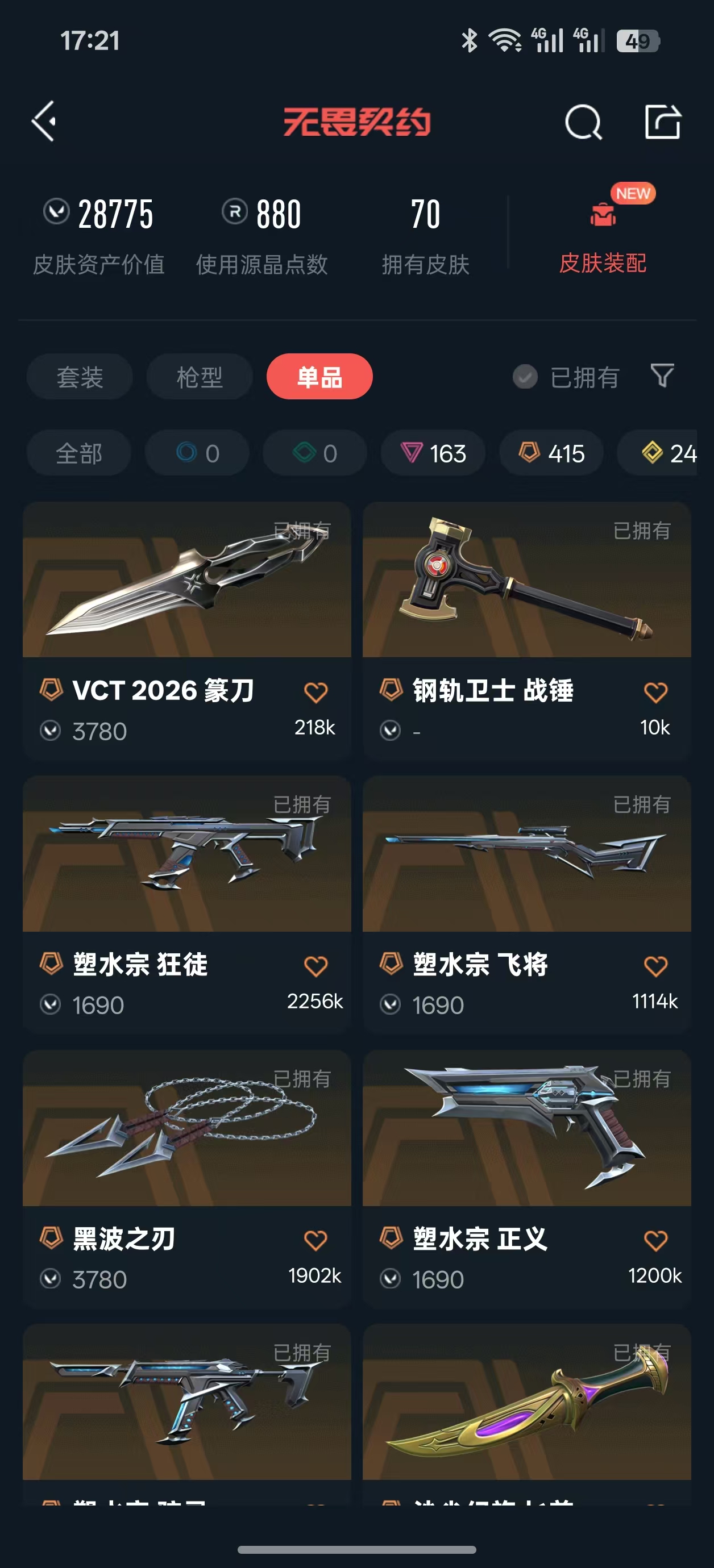 • 皮肤资产价值: 28775